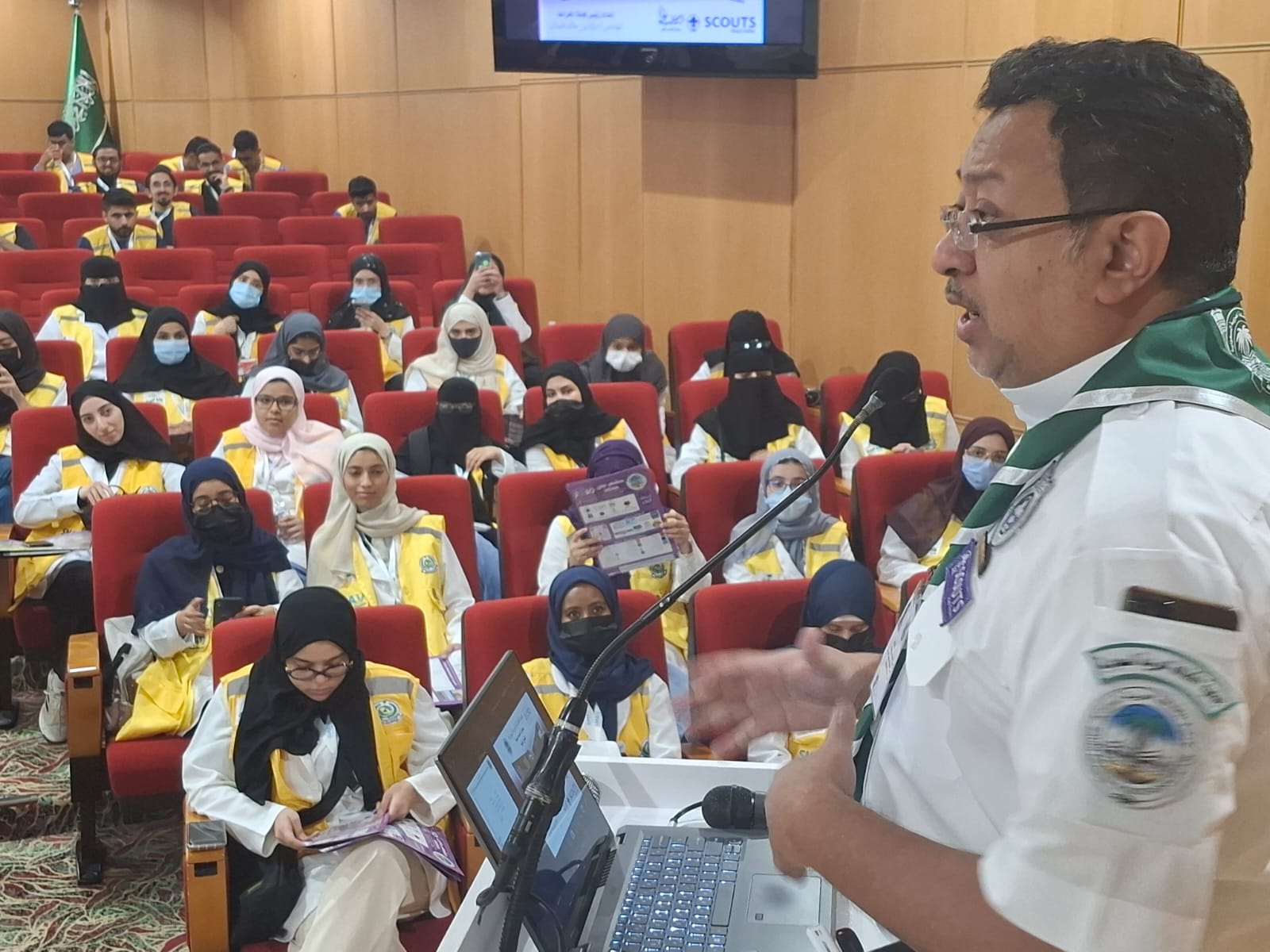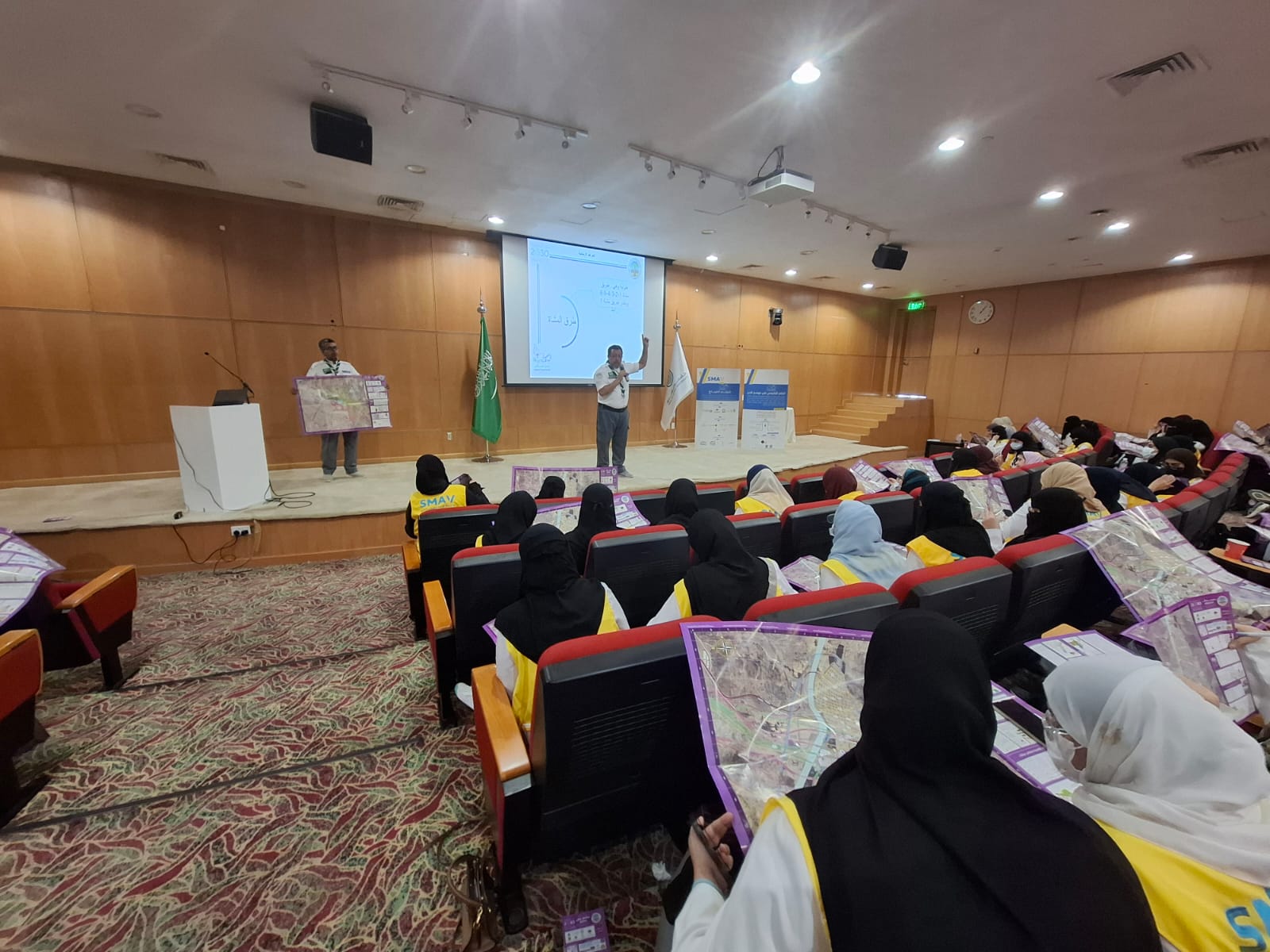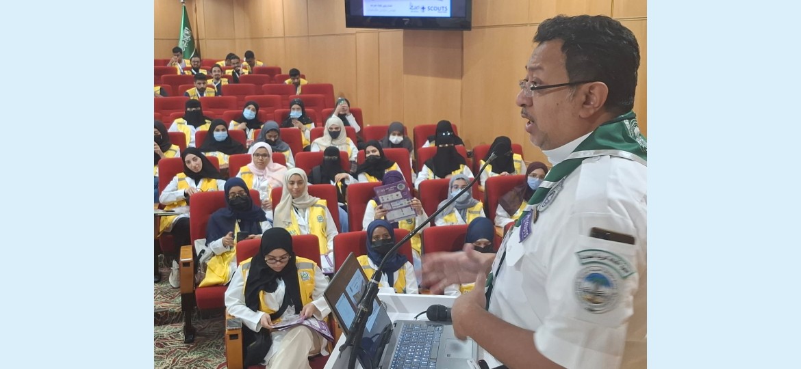 نظمت جمعية الكشافة العربية السعودية، ممثلة في معسكرات الخدمة العامة المقامة في مكة المكرمة والمشاعر المقدسة، اليوم، برنامجاً تدريبياً حول استخدام الخرائط الإرشادية وأساليب إرشاد الحجاج ضمن ندوة "سلامة المتطوعين في الحج"، التي تنظمها الأكاديمية السعودية للتطوع الصحي (SMAV).