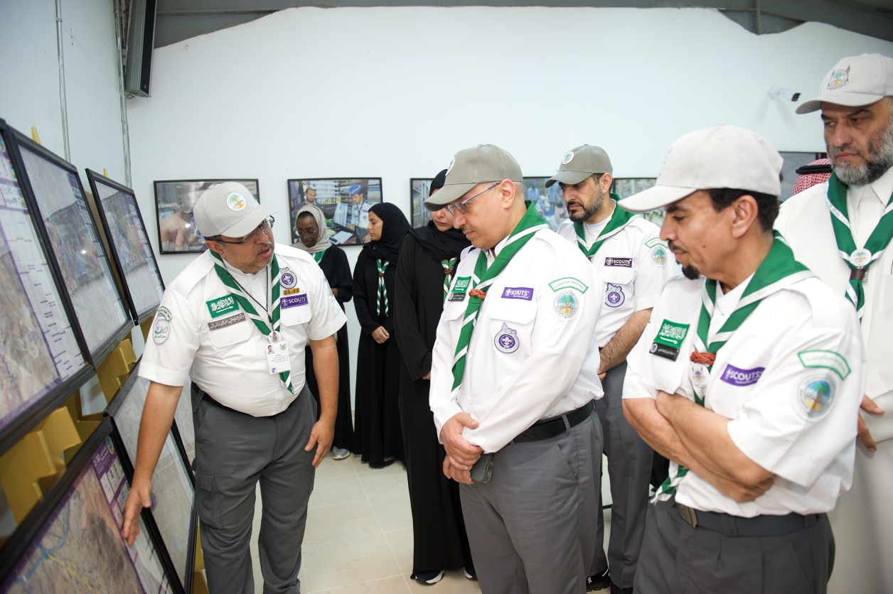 واطّلع معاليه خلال الجولة على الاستعدادات الميدانية للفرق الكشفية المشاركة، والخطط التشغيلية التي تنفذها الجمعية ضمن خدماتها في موسم الحج، بما في ذلك معرض الخرائط الإرشادية التي تُنتجها الجمعية سنوياً، ويزيد عددها على مليون نسخة ورقية ورقمية، متاحة للتوزيع والتحميل على الأجهزة الذكية لتسهيل عملية إرشاد الحجاج التائهين.