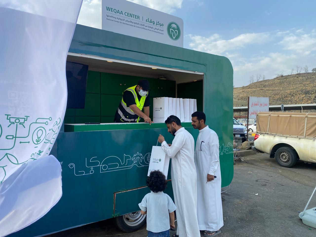 تواصل حملة "وقاء لتطمئن" والتي أطلقها المركز الوطني للوقاية من الآفات النباتية والأمراض الحيوانية ومكافحتها وقاء بمنطقة عسير فعالياتها خلال هذه الايام، حيث تتواجد الفرق البيطرية منذ ساعات الصباح الأولى لتقديم الارشادات والتوعية لمرتادي سوق الماشية بمدينة أبها، كما يتم تقديم العديد من المطويات الارشادية وتوزيع الهدايا على مرتادي السوق