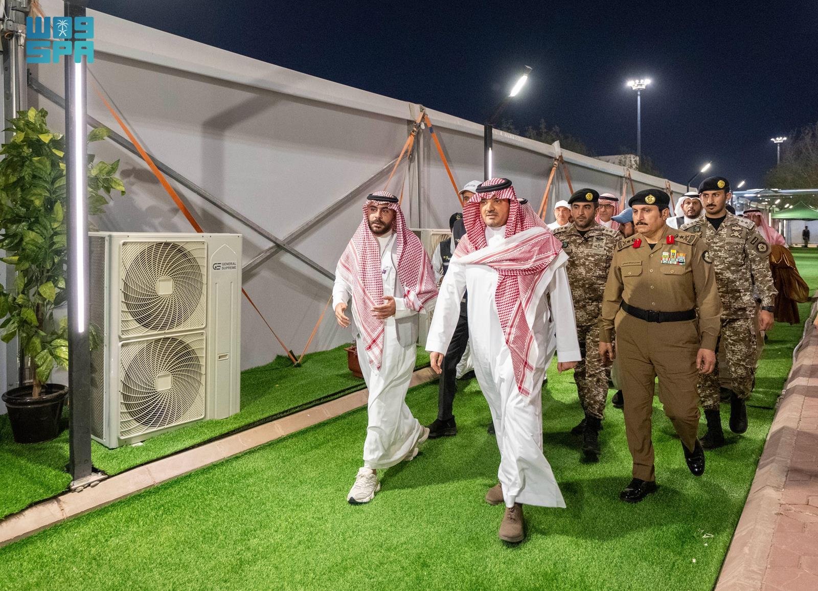 رافق سموه خلال الزيارة، صاحب السمو الأمير الدكتور عبدالعزيز بن محمد بن عياف نائب وزير الداخلية المكلف، ومعالي وزير الحج والعمرة الدكتور توفيق بن فوزان الربيعة، ومعالي وزير النقل والخدمات اللوجستية المهندس صالح بن ناصر الجاسر، ومعالي نائب وزير الحج والعمرة الدكتور عبدالفتاح بن سليمان مشاط، ومعالي مساعد وزير الداخلية الدكتور هشام بن عبدالرحمن الفالح، ومعالي وكيل وزارة الداخلية الدكتور خالد بن محمد البتال، ومعالي مدير الأمن العام الفريق محمد بن عبدالله البسامي، وعدد من كبار المسؤولين.