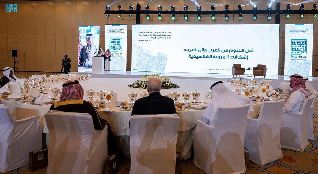 وألقى صاحب السمو الملكي الأمير تركي الفيصل رئيس مجلس إدارة مركز الملك فيصل للبحوث والدراسات الإسلامية كلمة نوه فيها بفكرة وتعريف ( المروية العربية ) وإشكالات السردية السائدة وما تحملها من حقيقة مجتزئة.