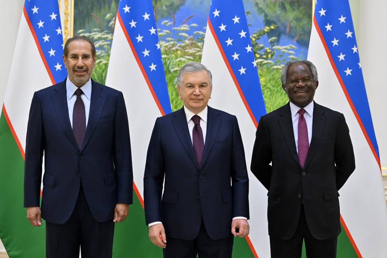 طشقند_استقبل الرئيس شوكت ميرضيائيف اليوم وفداً من المستثمرين الأجانب يتألف من رئيس مجلس إدارة شركة المرقاب كابيتال حمد بن جاسم آل ثاني والمدير العام الأول لشركة بلاك روك للاستثمار أديبايو أوجونليسي،