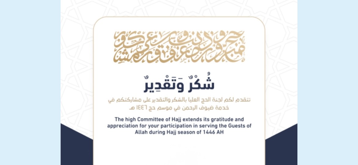 يذكر أن مبادرة الشكر والتقدير الرقمية للعاملين في موسم الحج تعد الأولى من نوعها، وتمنح العاملين على خدمة ضيوف الرحمن ذكرى رمزية تعزز من شعور الفخر والاعتزاز والامتنان لديهم بما قدموه من جهود كبيرة خدمةً لضيوف الرحمن.
