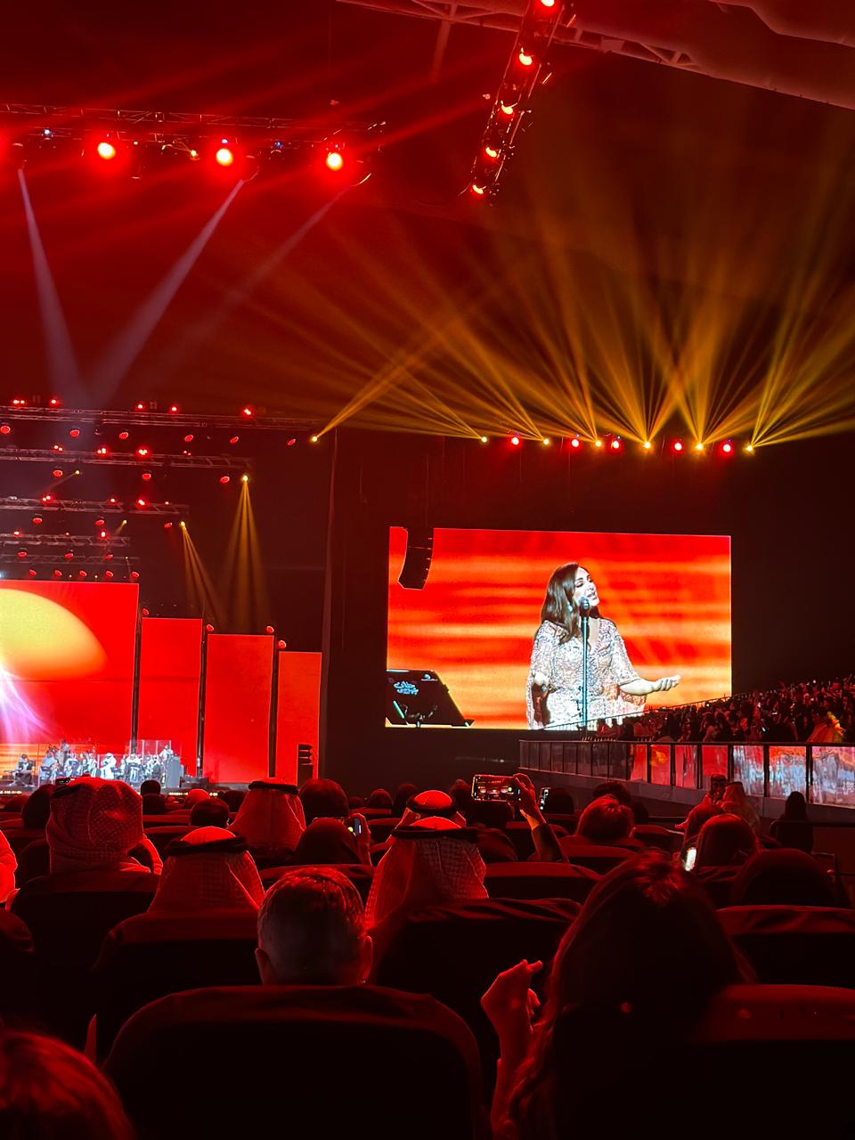 غنّت النجمة المصرية أنغام أكثر من 30 أغنية خلال ما يقرب من ثلاث ساعات، إذ أطربت حضور مسرح محمد عبده أرينا في مدينة الرياض فجر الخميس، في حفل مدرج ضمن فعاليات عيد الأضحى، من تنظيم روتانا بحضور ملأ جنبات المسرح.