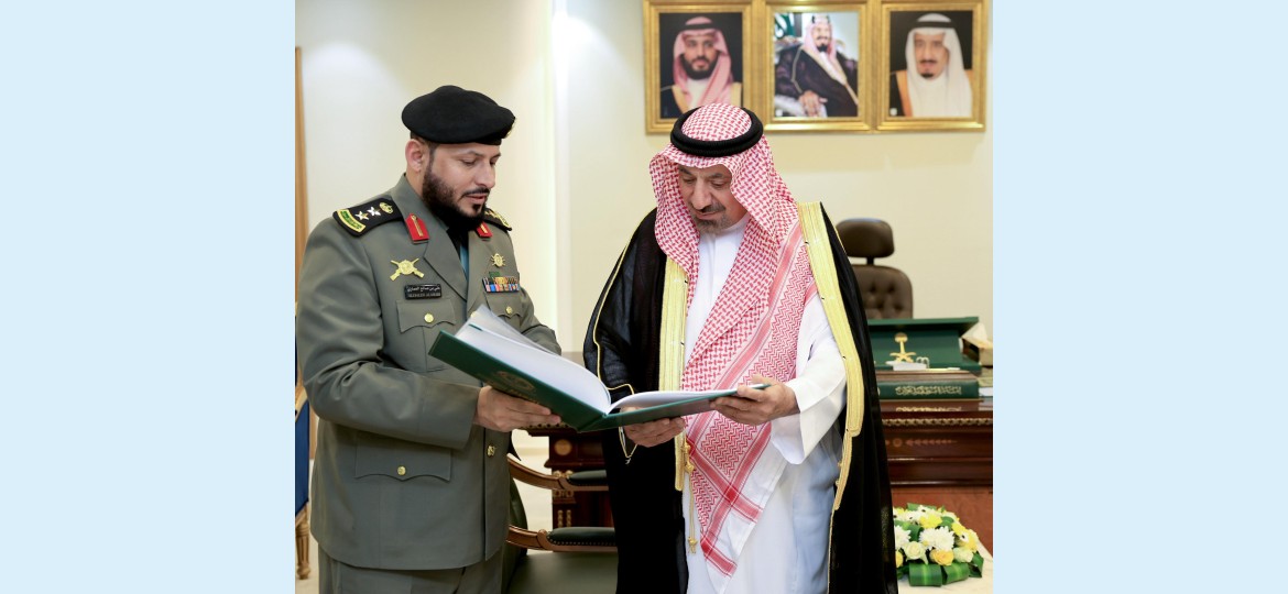 صاحب السمو الأمير جلوي بن عبدالعزيز بن مساعد أمير منطقة نجران على التقرير السنوي لقوة الأفواج الأمنية بالمنطقة.