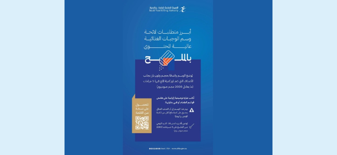 وأشارت إلى أنه ابتداءً من الأول من يوليو 2025م، ستلتزم المنشآت الغذائية بعرض معلومات تغذوية مفصّلة في قوائم الطعام، تتضمن وضع وسم "الملّاحة" بصفتها علامة استرشادية بجانب الوجبات عالية المحتوى بالملح، والإفصاح عن محتوى الكافيين في المشروبات، وتوضيح المدة الزمنية اللازمة لحرق السعرات الحرارية الناتجة عن استهلاك الوجبة.