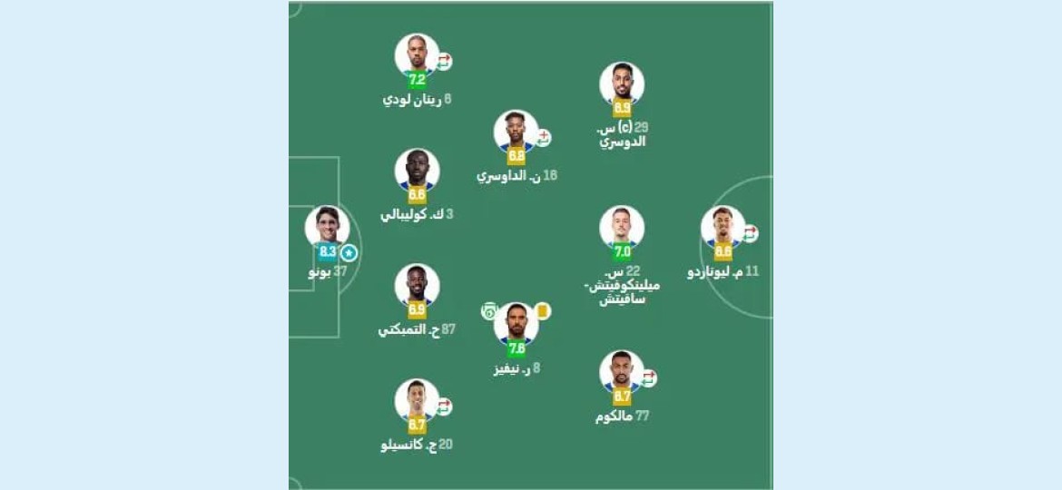 ورغم حصول بونو على أعلى تقييم في المباراة (8.3/10) بفضل تألقه الملفت، إلا أن الجائزة ذهبت لغارسيا الذي اكتفى بتسجيل هدف وحيد في مواجهة هيمن فيها الهلال على مجريات اللعب لفترات طويلة.