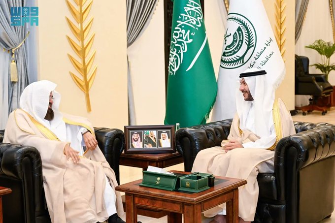 استقبل صاحب السمو الملكي الأمير سعود بن نهار بن سعود بن عبدالعزيز محافظ الطائف اليوم، معالي رئيس الشؤون الدينية بالمسجد الحرام والمسجد النبوي الشيخ الدكتور عبدالرحمن السديس.