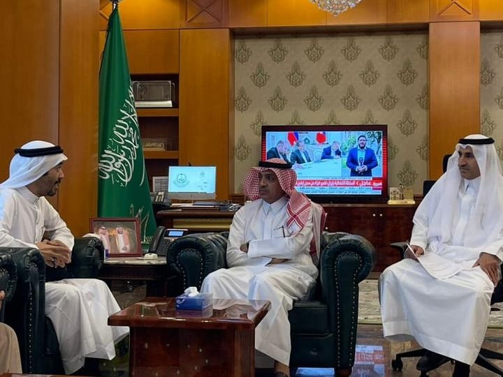 استقبل محافظ ينبع الأستاذ سعد السحيمي بمقر المحافظة رئيس نادي ريشة فنان التابع لجمعية أندية الهواة ، الفنان التشكيلي وهيب شاهين برفقة عدد من أعضاء النادي، وهم: الفنانة التشكيلية عايشة أبو العلا، والإعلامية عبير الجهني، والفنان محمد إدريس.