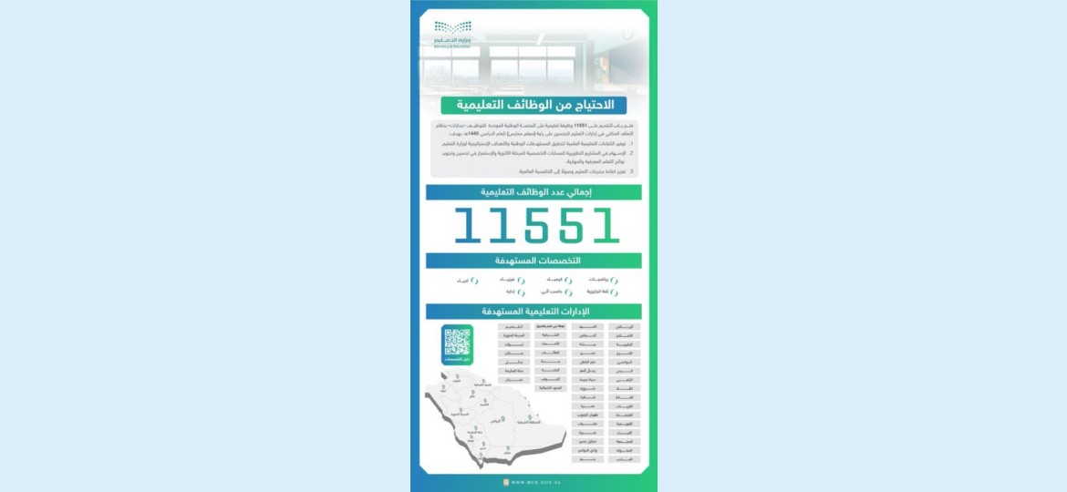 ويمكن الاطلاع على المزيد من المعلومات عبر بوابة الوزارة التعليم https://www.moe.gov.sa/ar/hr/Pages/default.aspx .