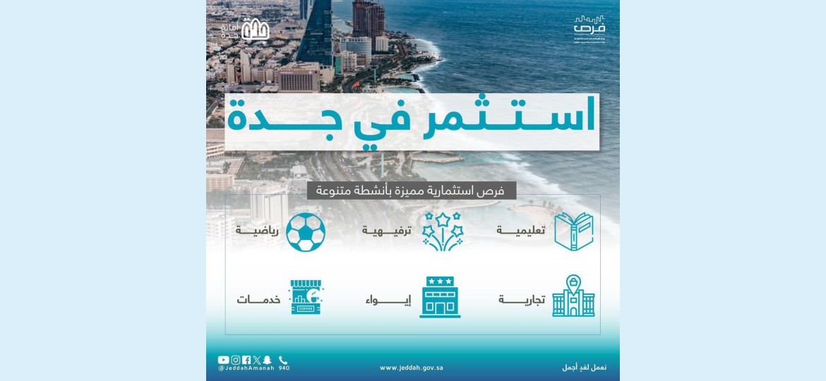 أعلنت أمانة محافظة جدة عبر حسابها الرسمي على منصة X عن طرح مجموعة من الفرص الاستثمارية المتنوعة، بهدف تعزيز التنمية في المدينة والمساهمة في رفع جودة الحياة.