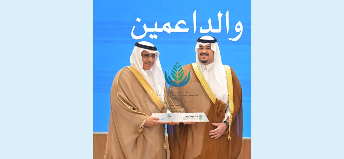كرّم صاحب السمو الملكي الأمير محمد بن عبدالرحمن بن عبدالعزيز نائب أمير منطقة الرياض جمعية الإعلاميين السعوديين- إعلام، تقديراً لمساهماتها في خدمة القطاع غير الربحي، من خلال الدعم الإعلامي لجهود جمعية (تيسير) التي تسعى إلى تمكين ذوي الإعاقة ومساعدتهم على الزواج، في إطار هدف إنساني نبيل يهدف إلى تعزيز استقرارهم الاجتماعي والنفسي، وتحقيق اندماجهم في المجتمع.