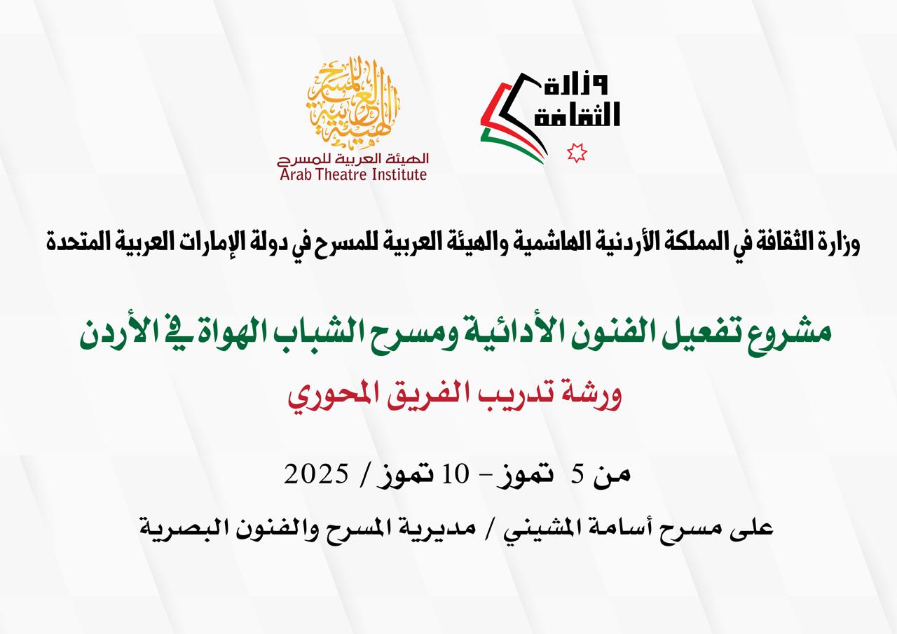 تنفيذاً لمذكرة التعاون بين الهيئة العربية للمسرح ووزارة الثقافة الأردنية في سبيل تفعيل الفنون الأدائية ومسرح الشباب الهواة في الأردن، انطلقت في العاصمة الأردنية دورة تأهيل الفريق المحوري الأردني لتفعيل مسرح الشباب الهواة، حيث يؤطرها الفنانان سعيد سلامة من فلسطين وزيد خليل مصطفى من الأردن.