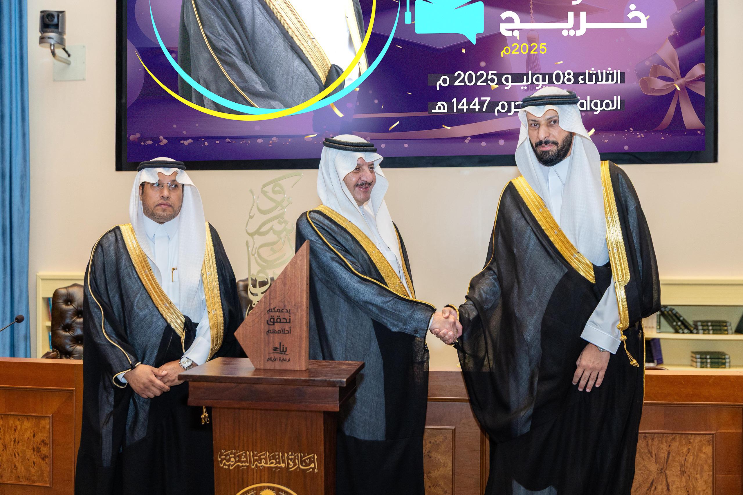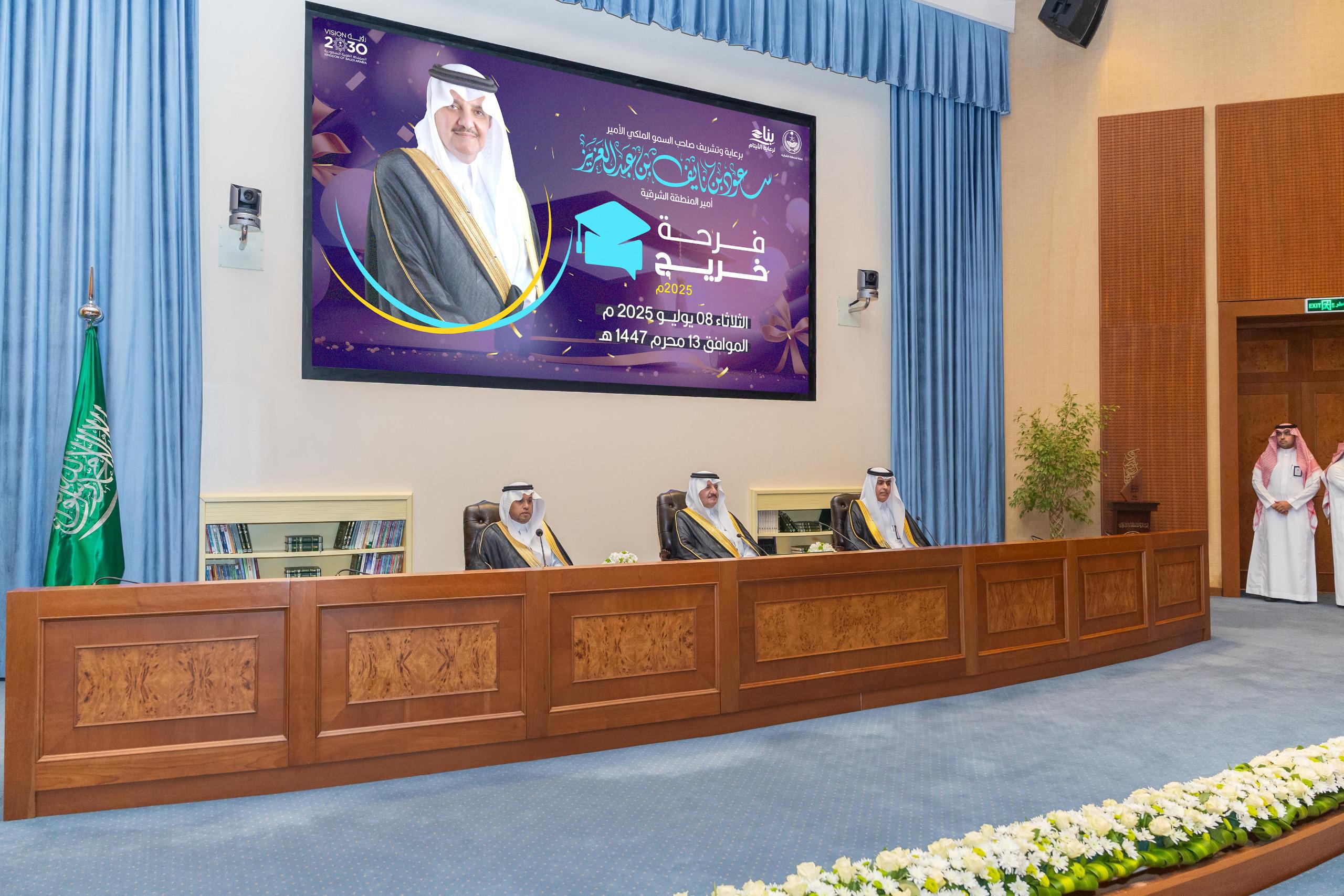 رعى صاحب السمو الملكي الأمير سعود بن نايف بن عبدالعزيز أمير المنطقة الشرقية، اليوم، حفل تخريج أكثر من 400 طالب وطالبة وأم من مستفيدي جمعية بناء لرعاية الأيتام بالمنطقة الشرقية، وذلك في مقر الإمارة.