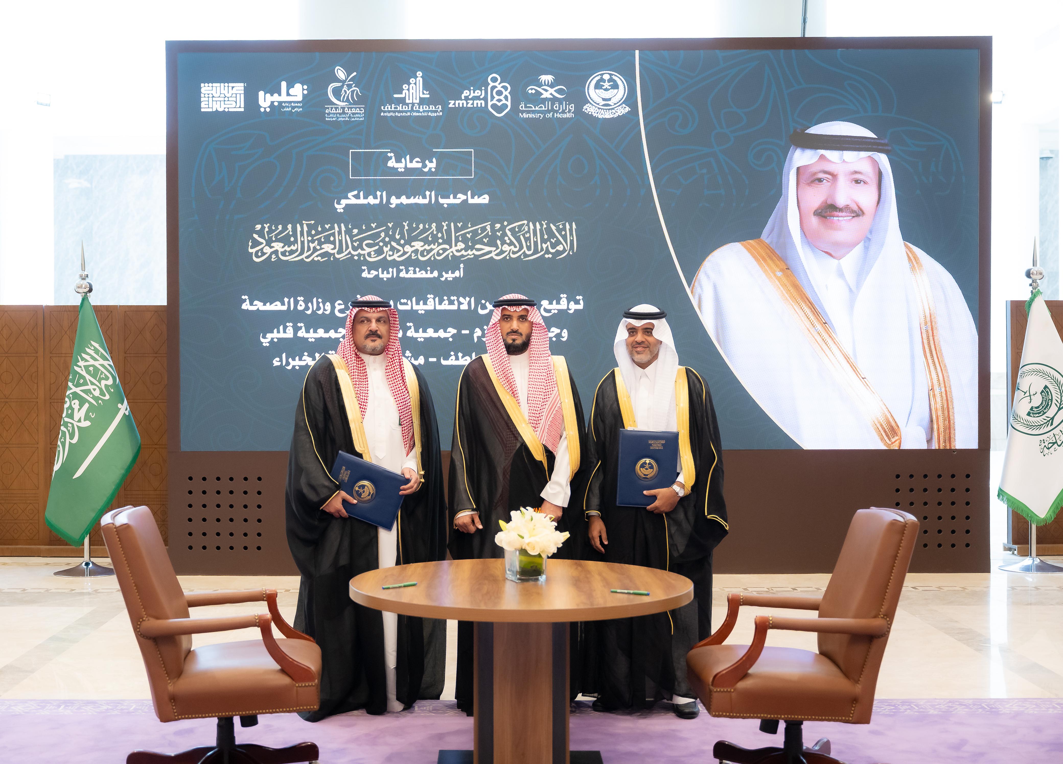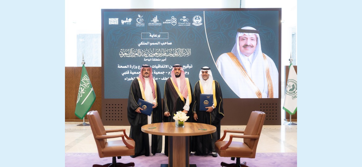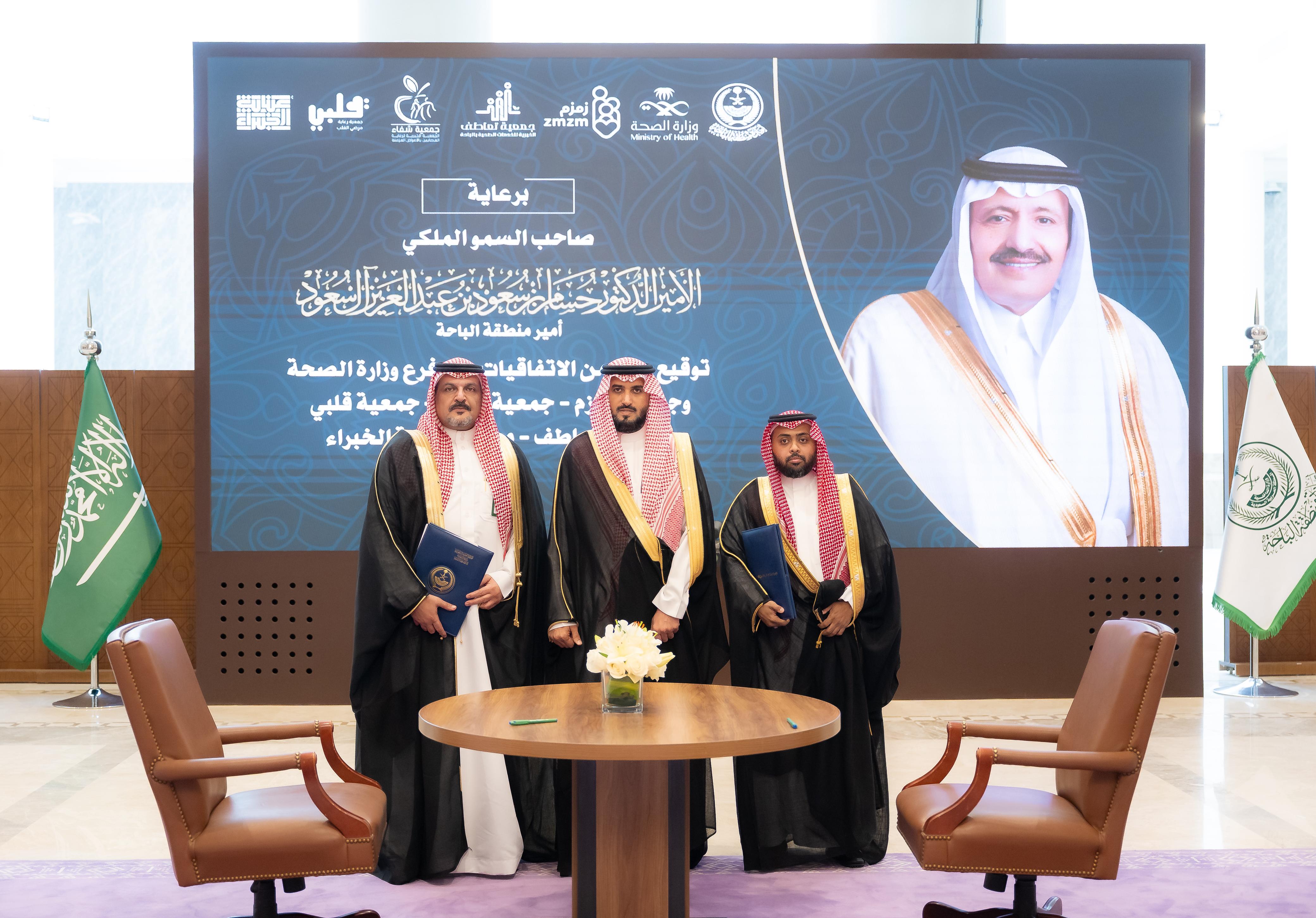 وحضر حفل التوقيع سعادة مدير عام فرع وزارة الصحة بمنطقة الباحة الدكتور عبدالدائم العنزي، ومساعد المدير العام لتعزيز الاستثمار الصحي الأستاذ مالك سالم فرحة، ورئيس مجلس إدارة مجموعة الخبراء الطبية الدكتور علي محمد عبده الخيري، ونائب المدير العام لجمعية زمزم عمر حسن الخيري، والمدير التنفيذي لجمعية رعاية مرضى القلب فيصل بن عبدالرزاق الرشيدان، ورئيس مجلس إدارة الجمعية الخيرية لرعاية المصابين بالأمراض المزمنة (شفاء) عصام محمد الأهدل.