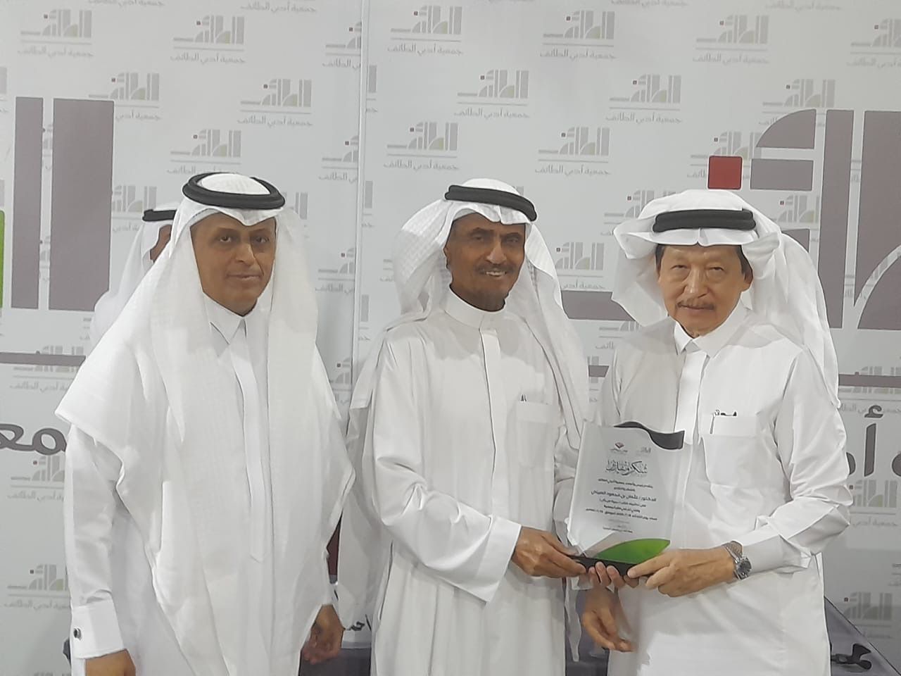 ثم تشارك رئيس الجمعية الأستاذ عطا الله الجعيد، وعضو مجلس الشورى الأستاذ سليمان الزايدي تكريم الضيف، ومدير الأمسية، لتختم الأمسية بتوقيع د. الصيني للكتاب.