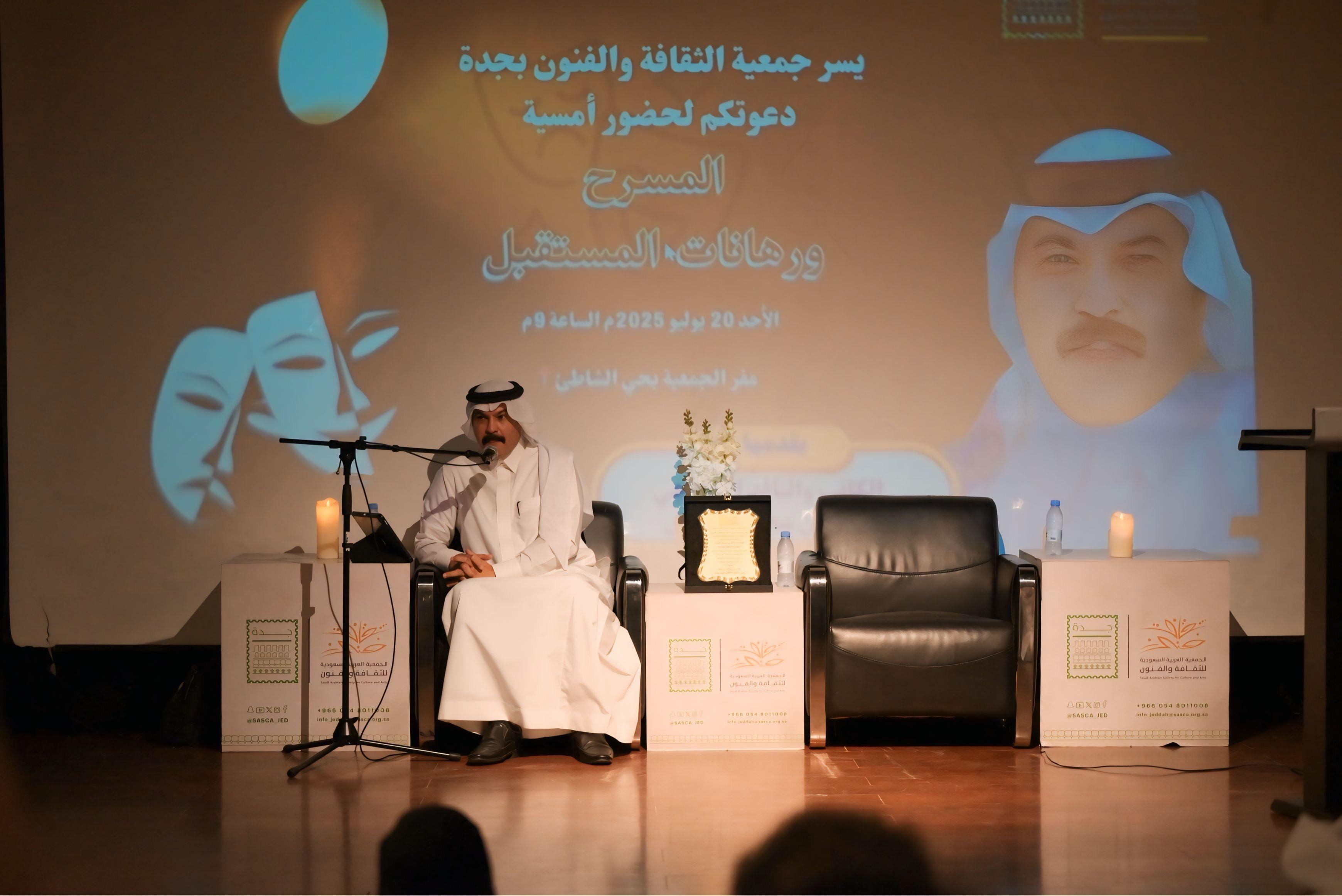 أقامت جمعية الثقافة والفنون بجدة أمسية ثقافية بعنوان "المسرح ورهانات المستقبل"، قدّمها الكاتب والناقد المسرحي ناصر بن محمد العمري، وسط حضور نخبة من المسرحيين والمهتمين بالشأن الثقافي.