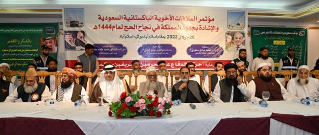 جاء ذلك خلال أقامة حركة الدفاع عن الحرمين الشريفين بباكستان يوم أمس الاربعاء 26 يوليو 2023 م لمؤتمر العلاقات الأخوية الباكستانية السعودية والإشادة بجهود المملكة في نجاح الحج لعام ١٤٤٤ ھ وخدمات المملكة العربية السعودية للحجاج والمعتمرين.