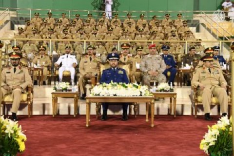 حضر الحفل، معالي قائد القوات المشتركة نائب رئيس هيئة الأركان العامة الفريق الأول الركن مطلق بن سالم الأزيمع، ومعالي قائد القيادة العسكرية الموحدة لدول مجلس التعاون لدول الخليج العربية الفريق الركن عيد بن عواض الشلوي، ومعالي قائد القوات البحرية الفريق الركن فهد بن عبدالله الغفيلي، ومعالي قائد قوة الصواريخ الاستراتيجية الفريق الركن جارالله بن محمد العلويط، ومعالي قائد قوات الدفاع الجوي الفريق الركن مزيد بن سليمان العمرو، وسمو قائد القوات الجوية الفريق الركن تركي بن بندر بن عبدالعزيز، وعددًا من كبار ضباط القوات المسلحة.