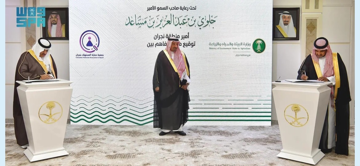 وقّع مذكرات التفاهم مدير عام فرع البيئة والمياه والزراعة بالمنطقة المهندس مريح الشهراني، مع جمعية حماية المستهلك، ومثلها في التوقيع رئيس مجلس إدارتها بالمنطقة ناصر عبدالله آل عنكيص، وجمعية الخير لكبار السن بنجران، ومثلها المدير التنفيذي للجمعية سيناء صالح آل قنة، وجمعية نور النسائية لخدمة ذوي الإعاقة، ومثلها المدير التنفيذي للجمعية غادة محمد آل مستنير، وشركة مدارس الإبداع في التطوير العالمية، ومثلها رئيس مجلس إدارتها حسين علي آل عبية.