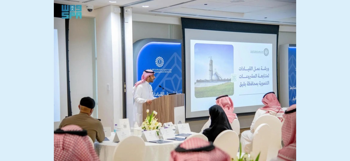 نظّمت هيئة تطوير المنطقة الشرقية اليوم، ورشة عمل القيادات لمتابعة المشروعات التنموية بمحافظة بقيق، بمشاركة 24 جهة تنموية، وذلك في مدينة الملك سلمان للطاقة (سبارك), في محافظة بقيق.