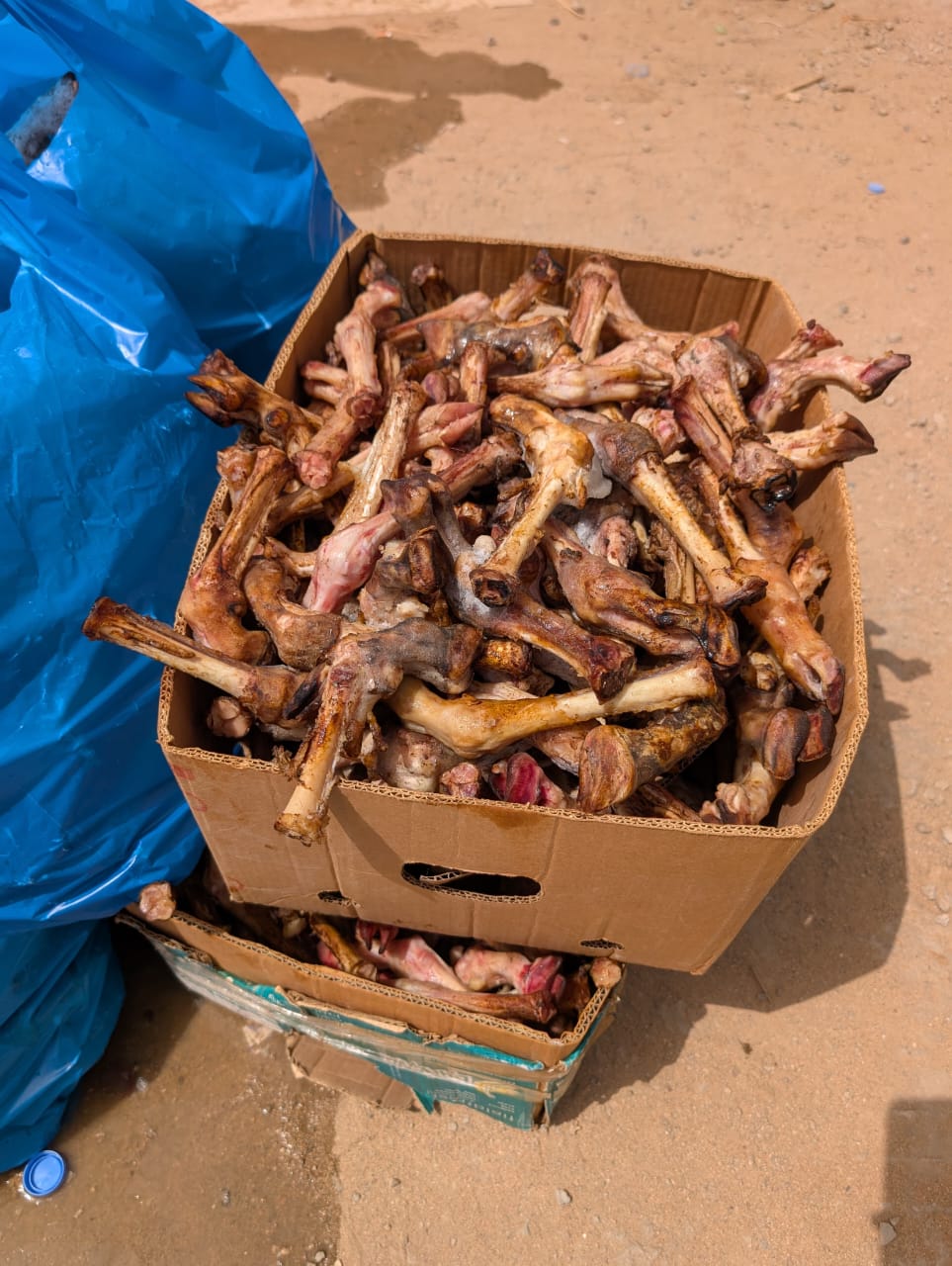 وأوضحت الأمانة أن الفرق الميدانية التابعة للإدارة العامة لرصد ومعالجة الظواهر السلبية، وبدعم من هيئة الزكاة والضريبة والجمارك، وزارة التجارة، الهيئة العامة للغذاء والدواء، والضبط الميداني، باشرت موقع مخالف داخل أرض فضاء يتصل بحوش آخر، يحوي ثلاث غرف تأوي عددًا من العمال، عُثر بداخلها على لحوم رؤوس وعظام أغنام غير صالحة للاستهلاك الآدمي ، وتظهر عليها علامات التلف والفساد.