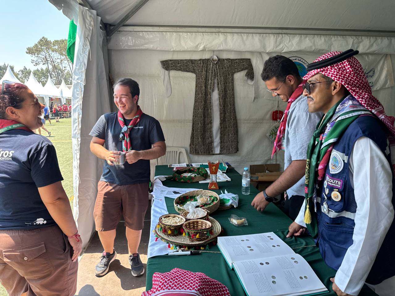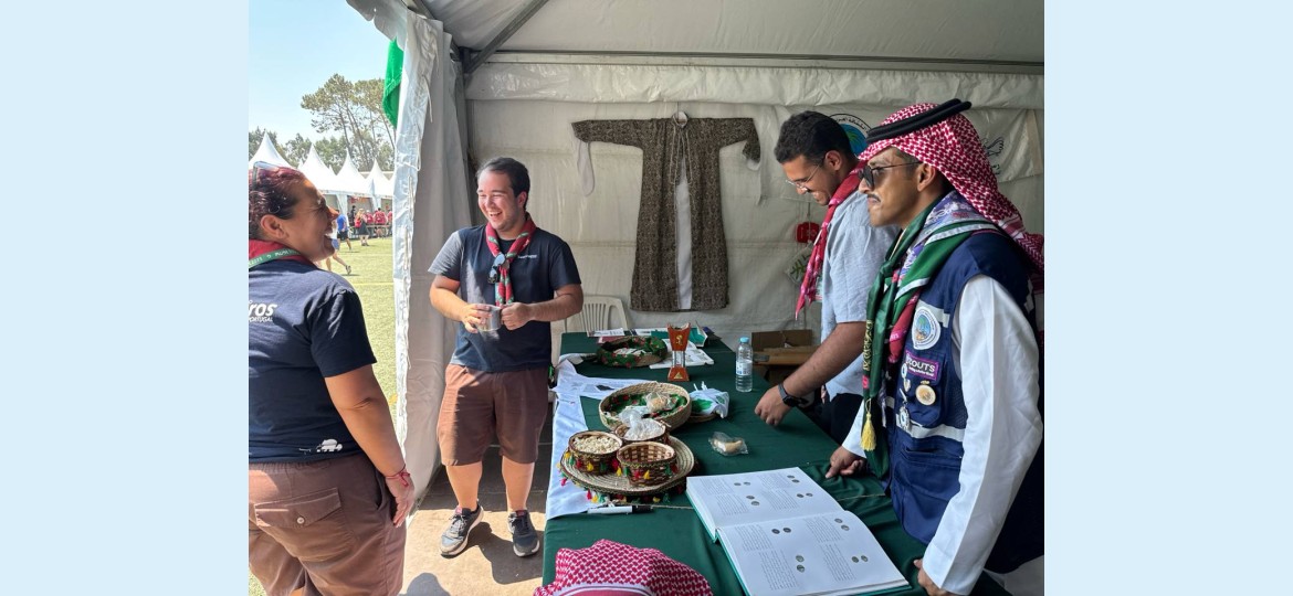 تشهد خيمة جمعية الكشافة العربية السعودية، المشاركة في فعاليات اللقاء الكشفي العالمي السادس عشر للجوالة (Moot) ، المقام حالياً في جمهورية البرتغال، إقبالاً واسعاً من المشاركين الدوليين، الذين توافدوا للتعرّف على جانب من مكونات الثقافة السعودية وتراثها الوطني.