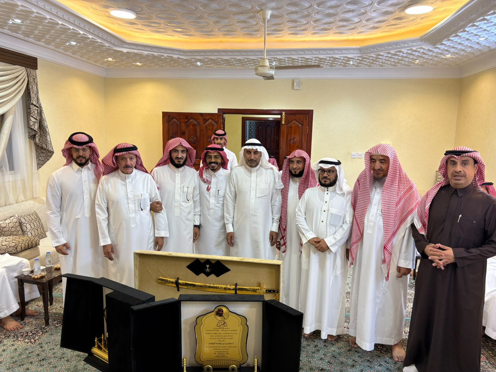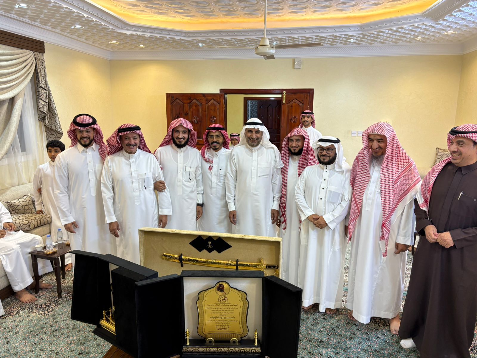 كرم العميد علي بن حسن بن عبدالمجيد الزهراني وأشقاءه الأستاذ محمد بن حسن بن عبدالمجيد الزهراني وسعادة المحافظ عمران بن حسن بن عبدالمجيد الزهراني ابنهم " سعيد بن يوسف الزهراني " وذلك بمناسبة حصوله على درجة الدكتوراه في الحديث الشريف بتقدير امتياز مع مرتبة الشرف وذلك مساء يوم الخميس ٦ صفر ١٤٤٧هـ الموافق ٣١ يوليو ٢٠٢٥ م في منزلهم العامر في قرية الحلاه بمحافظة المندق وذلك بحضور الأهل وعدد من الأقارب والأصدقاء والأنساب في ليلة كانت مميزه في جميع فصولها قدمت فيها عدد من الدروع والهدايا للدكتور سعيد وقدمت له التهاني والتبريكات متمنين له التوفيق والنجاح في حياته القادمة.