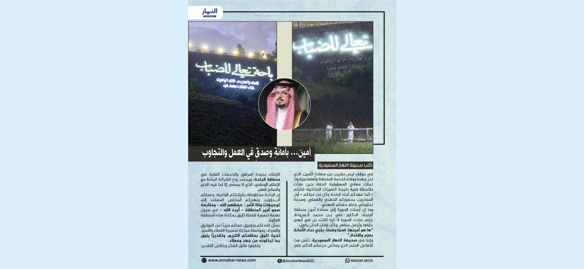 وإننا في صحيفة النهار السعودية، نثمّن هذا التفاعل المثمر الذي يعكس حرصكم الدائم على الارتقاء بجودة المرافق والخدمات العامة في منطقة الباحة، ويجسّد روح الشراكة البنّاءة مع الإعلام الوطني، الذي لا يسعى إلا لما فيه الخير والصالح العام.