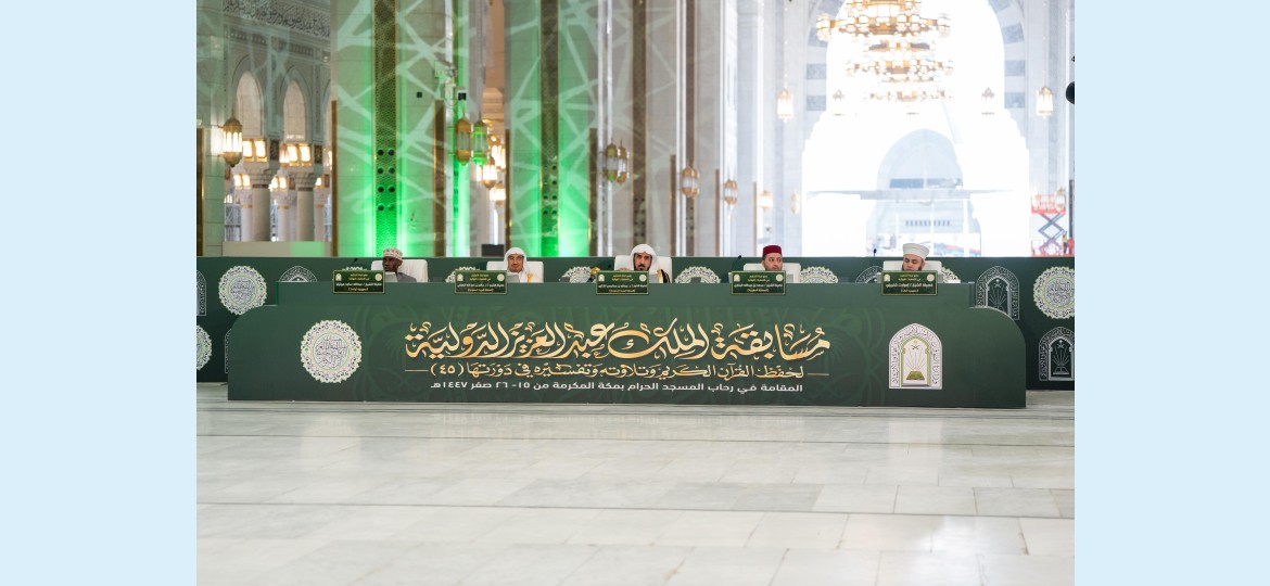 افتتح معالي وزير الشؤون الإسلامية والدعوة والإرشاد، الشيخ الدكتور عبداللطيف بن عبدالعزيز آل الشيخ، المشرف العام على مسابقة القرآن الكريم المحلية والدولية، اليوم السبت 15 صفر 1447هـ، التصفيات النهائية لمسابقة الملك عبدالعزيز الدولية لحفظ القرآن الكريم وتلاوته وتفسيره في دورتها الـ45، التي تنظمها الوزارة برعاية كريمة من خادم الحرمين الشريفين الملك سلمان بن عبدالعزيز آل سعود – حفظه الله –، في رحاب المسجد الحرام، بمشاركة 179 متسابقًا يمثلون 128 دولة من مختلف قارات العالم، وتستمر التصفيات ستة أيام على فترتين صباحية ومسائية، ويشارك في تحكيمها نخبة من المحكمين الدوليين.