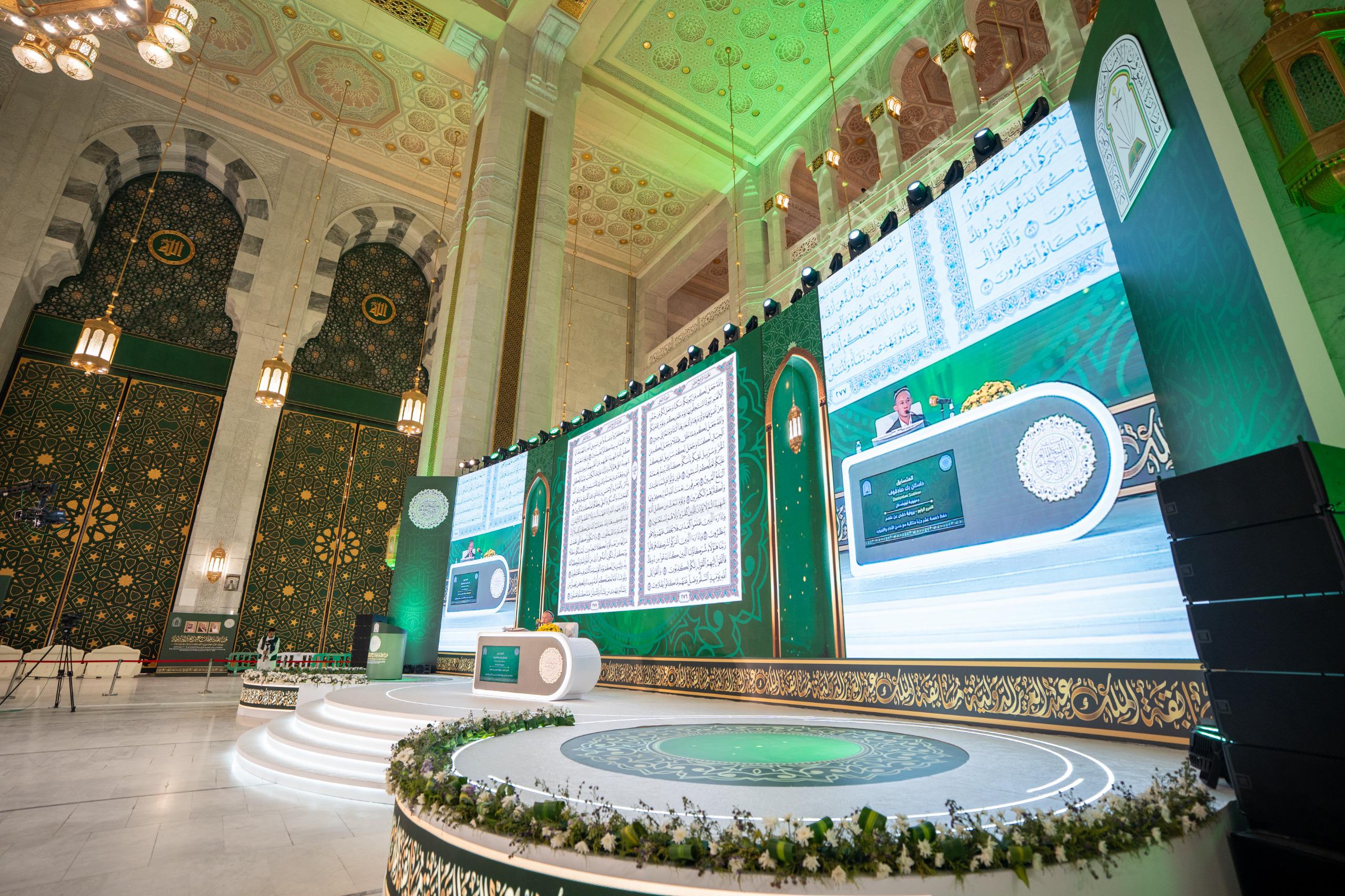وتسهم هذه الشاشات الرقمية، التي تنقل التلاوات عبر بث مباشر، في إثراء تجربة الحضور من خلال عرض صفحات المصحف أثناء التلاوة، إلى جانب معلومات تفصيلية عن كل متسابق تشمل اسمه، ودولته، والفرع الذي يشارك فيه، مما يعزز التفاعل مع مجريات المسابقة ويتيح متابعة دقيقة لمستوى الأداء.