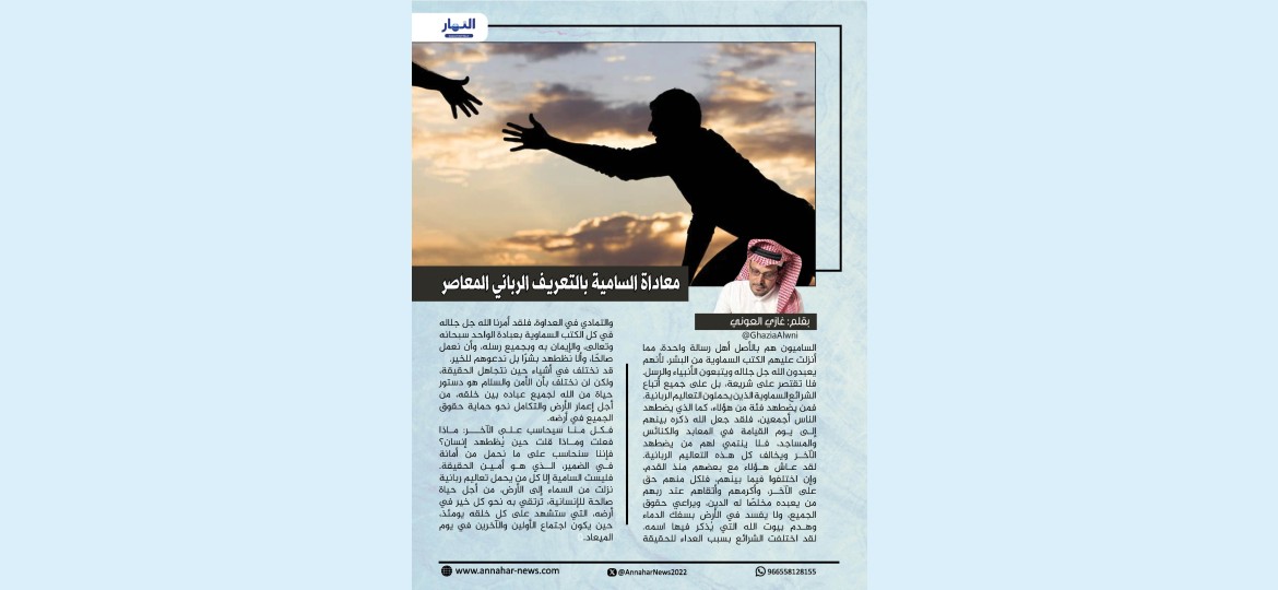 فليست السامية إلا كل من يحمل تعاليم ربانية نزلت من السماء إلى الأرض، من أجل حياة صالحة للإنسانية، ترتقي به نحو كل خير في أرضه، التي ستشهد على كل خلقه يومئذ، حين يكون اجتماع الأولين والآخرين في يوم الميعاد.