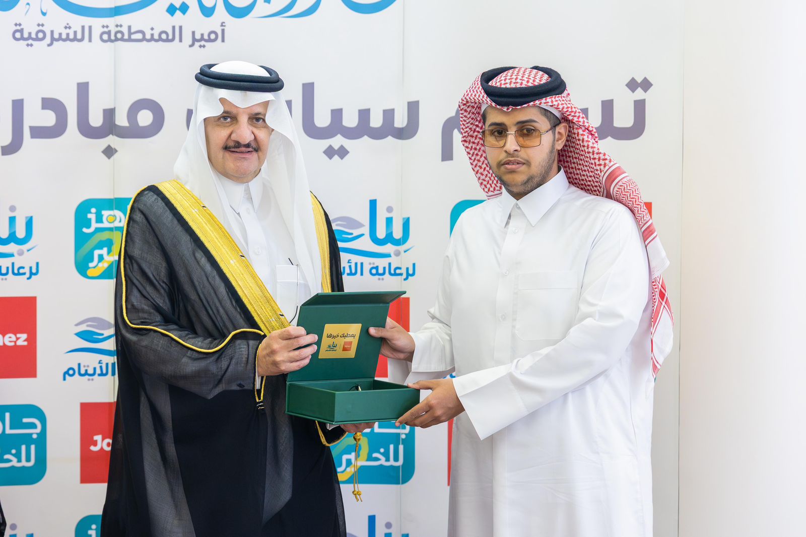 وقال الخالدي " أننا نسعد اليوم بتسليم سمو أمير المنطقة الشرقية عشر سيارات لأبنائنا الأيتام بدعم من شركة "جاهز"، ضمن مبادرة "جاهز الخير" والتي أثمرت – وبحمد الله – في الفترة الماضية عن جمع مليون ريال تبرعت بها الشركة وعملاؤها للمساهمة في دعم مشروع تاكسي وكفالة الأيتام" ، مقدماً الشكر لسمو أمير المنطقة الشرقية على دعمه للجمعية ولهذا المشروع الذي ساهم في بناء مستقبل الأيتام، ثم سلم سموه السيارات للمستفيدين.