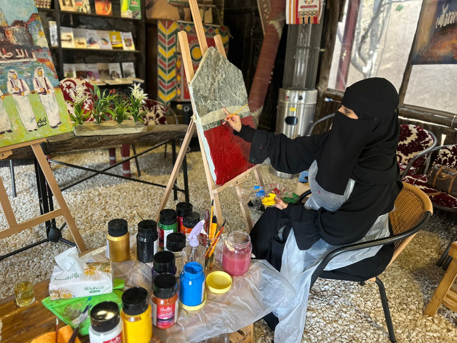 - وتلخص الفنانة نوال العمري حصيلة مشاركتها في فعاليات المتحف قائلة: شاركت لمدة ثلاثة أيام في الرسم أمام زوار المتحف، الذي اعتبره من أهم المتاحف الخاصة بالمملكة، بما يضمه من تحف وآثار ومقتنيات، فكانت تجربة رائعة بالنسبة لي.. ذلك أن الرسم في موقع ثراثي، ومتحف ذاخر بالكنوز والقطع الناردة الجميلة، يحفز الإلهام، ويفتح النوافذ لطاقة الإبداع الداخلي، فكان أن أخرجت أبدع ما داخلي، في لوحة أسعدني كثيرًا أنها وضعت في مقدمة المتحف.