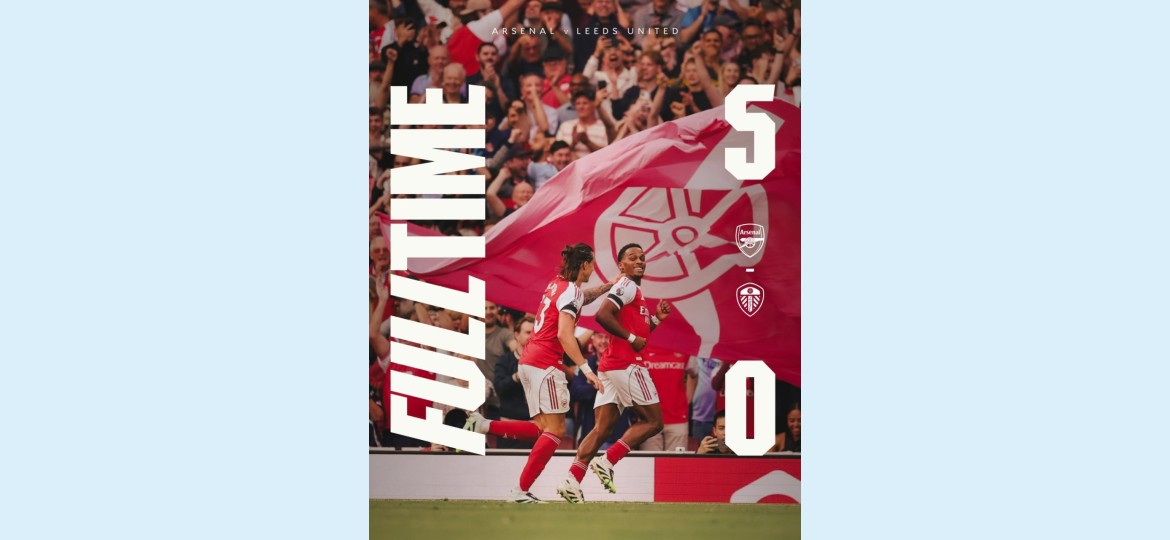 حقق آرسنال فوزًا كاسحًا على ضيفه ليدز يونايتد بنتيجة 5-0، في المباراة التي أُقيمت اليوم السبت على ملعب الإمارات ضمن منافسات الدوري الإنجليزي الممتاز.