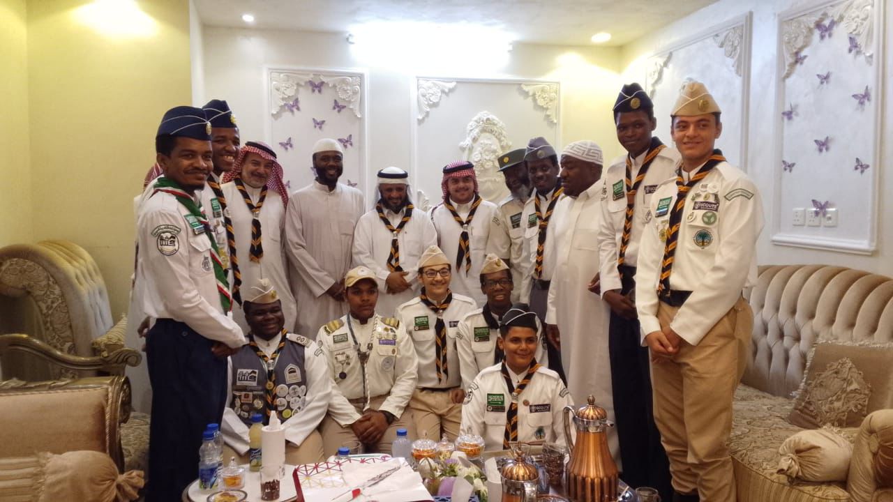 وقد ضم الوفد القائد الكشفي علي عبدالعزيز الرويشد المشرف على النشاط الكشفي بمحافظة الزلفي، والقائد الكشفي الإعلامي علي عبدالله الحربي من منطقة الرياض، والمصمم ريان خالد المري من مؤسسة الأمير محمد بن سلمان "مسك"، يرافقهم المشرف العام على فريق كشافة شباب مكة المكرمة القائد الكشفي الإعلامي عثمان خليفة مدني، والقائد الكشفي طاهر محمد ملا عضو المجلس الاستشاري، والقائد الكشفي التربوي خالد محمد بادابود، والجوال المهندس صلاح حسن سقطي قائد فرقة الجوالة بكشافة شباب مكة المكرمة إضافة إلى مجموعة من أعضاء فرق البراعم والأشبال والفتيان والمتقدم والجوالة والقادة من منسوبي الفريق.