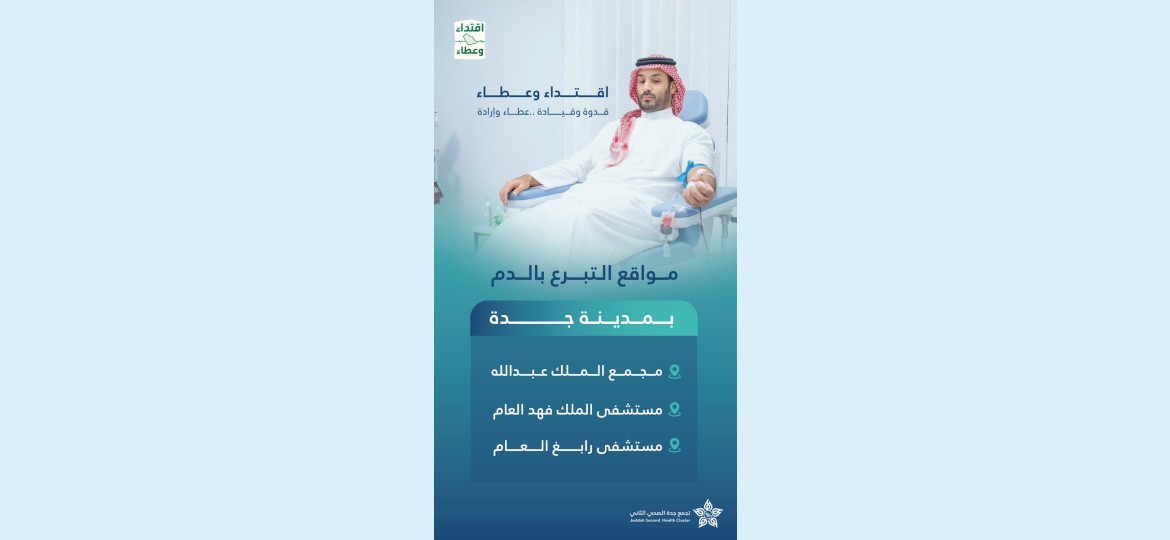 يواصل تجمع جدة الصحي الثاني، استقبال المتبرعين بالدم من مختلف شرائح المجتمع، استجابة للحملة الوطنية السنوية للتبرع بالدم، التي أطلقها صاحب السمو الملكي الأمير محمد بن سلمان بن عبدالعزيز آل سعود، ولي العهد رئيس مجلس الوزراء -حفظه الله- تحت شعار "اقتداء وعطاء"؛ التي تأتي امتدادًا لرعاية سموه الكريمة للعمل الإنساني، وتجسيدًا لحرصه على تعزيز المشاركة المجتمعية، وترسيخ ثقافة التبرع الطوعي، ودعمًا للجهود الوطنية في القطاع الصحي، تحقيقًا لمستهدفات رؤية المملكة 2030 نحو مجتمع حيوي يتمتع بصحة متكاملة.