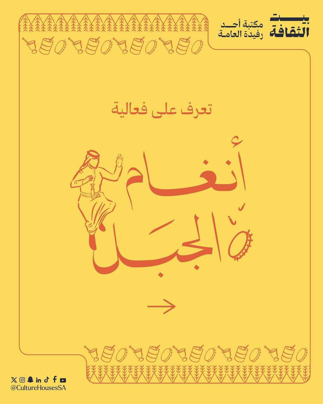 يشهد بيت الثقافة بمحافظة أحد رفيدة انطلاق فعالية مميزة تحت عنوان "فنون الجبل الأدائية"، وسط حضور متوقع من عشاق التراث والفنون الشعبية.