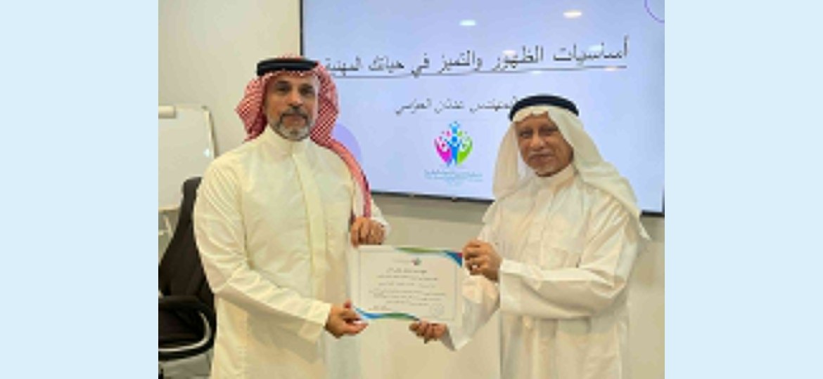 وفي ختام البرنامج قدم المهندس حسين الهزاع رئيس مجلس إدارة الجمعية شهادة شكر وتقدير للمستشار العوامي.