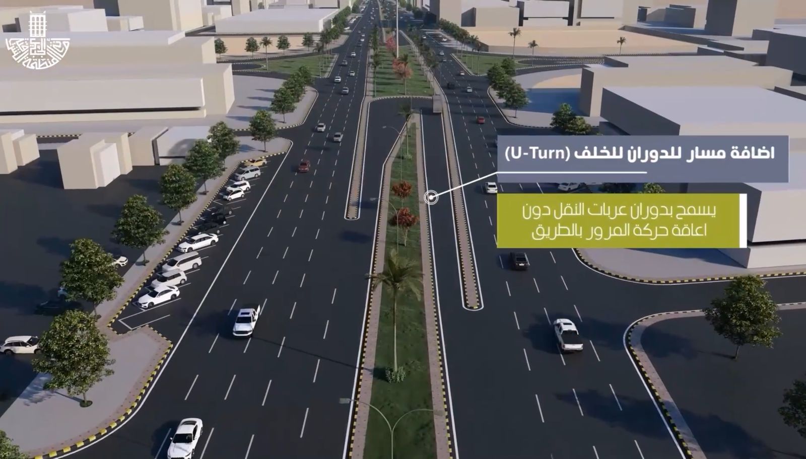 ويمتد المشروع بطول 12 كيلومتر، ويشمل إعادة تصميم مواقف السيارات بطريقة أكثر كفاءة وتنظيم، إضافة إلى مسارات دوران خلفي تسهم في تسهيل حركة المركبات دون التأثير على تدفق السير مما يسهم في تقليص زمن الرحلة من 18 دقيقة و23 ثانية إلى 9 دقائق و17 ثانية بنسبة انخفاض تصل إلى 50 في المئة.