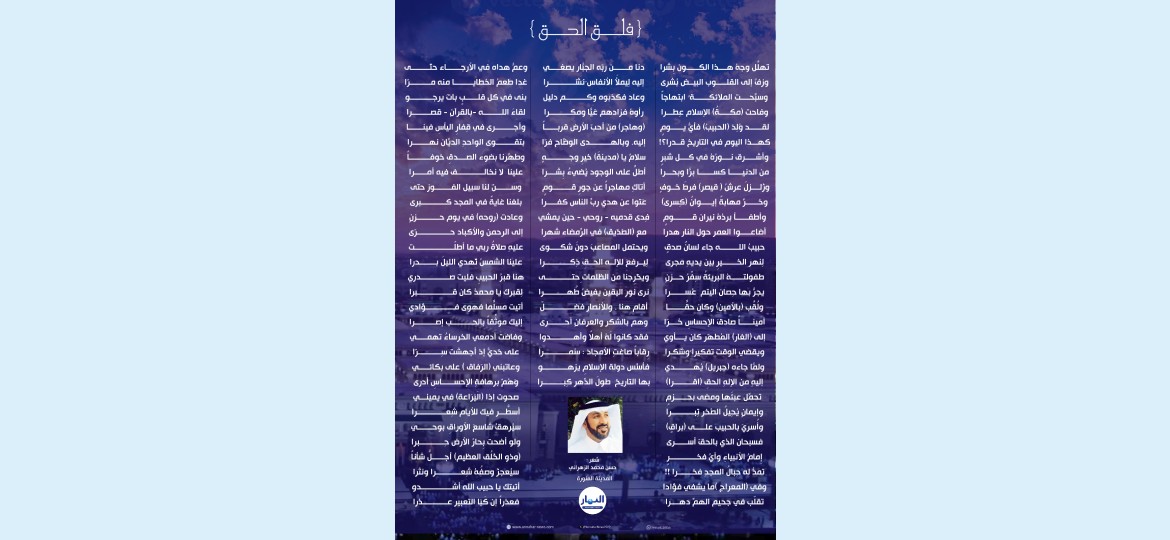 وهي قصيدة تنبض بالإيمان وتفيض بالحب الصادق، لتجسد عظمة الرسالة وخلود الذكرى، وتنشرها صحيفة النهار السعودية لقرّائها الكرام.