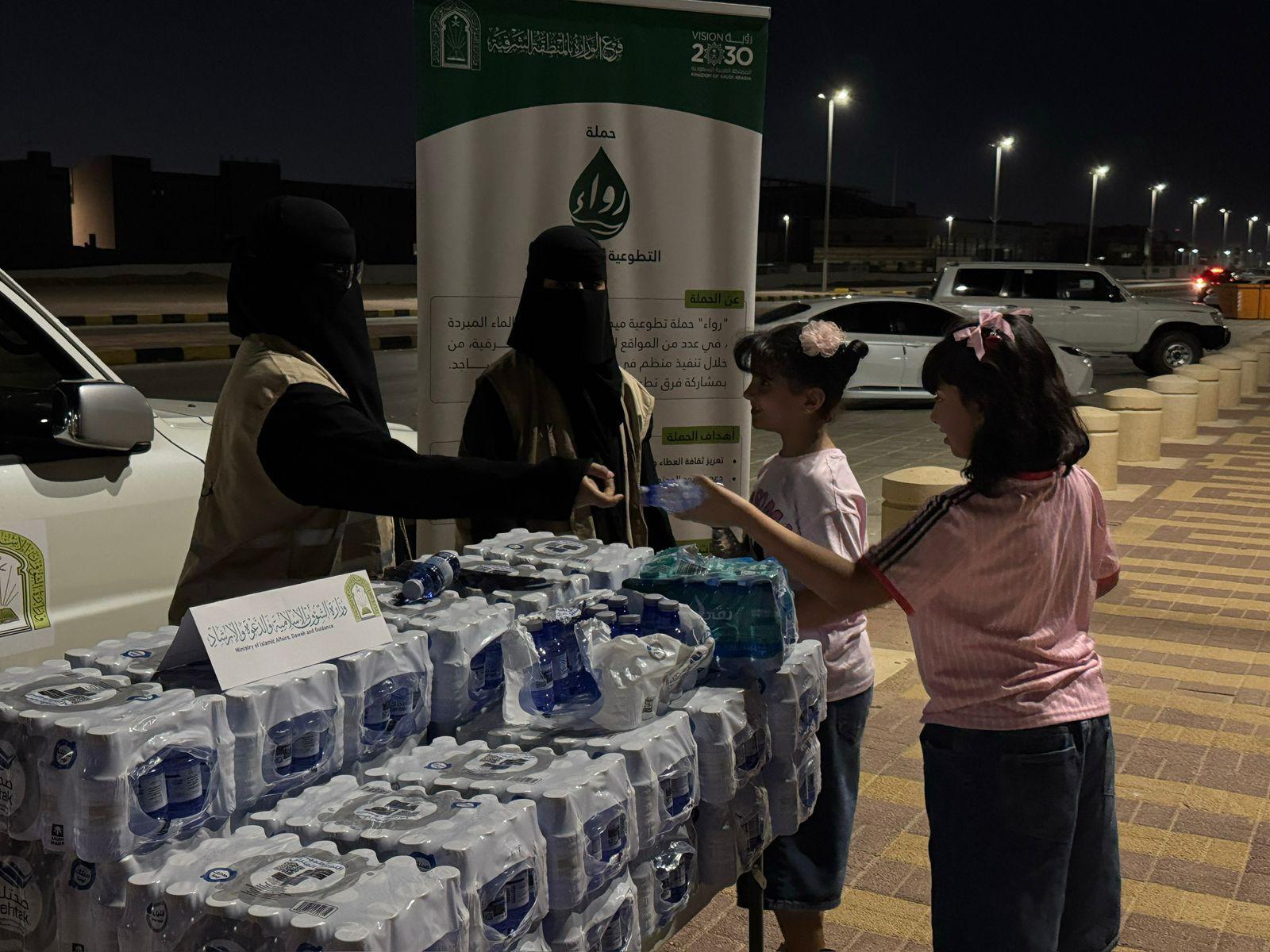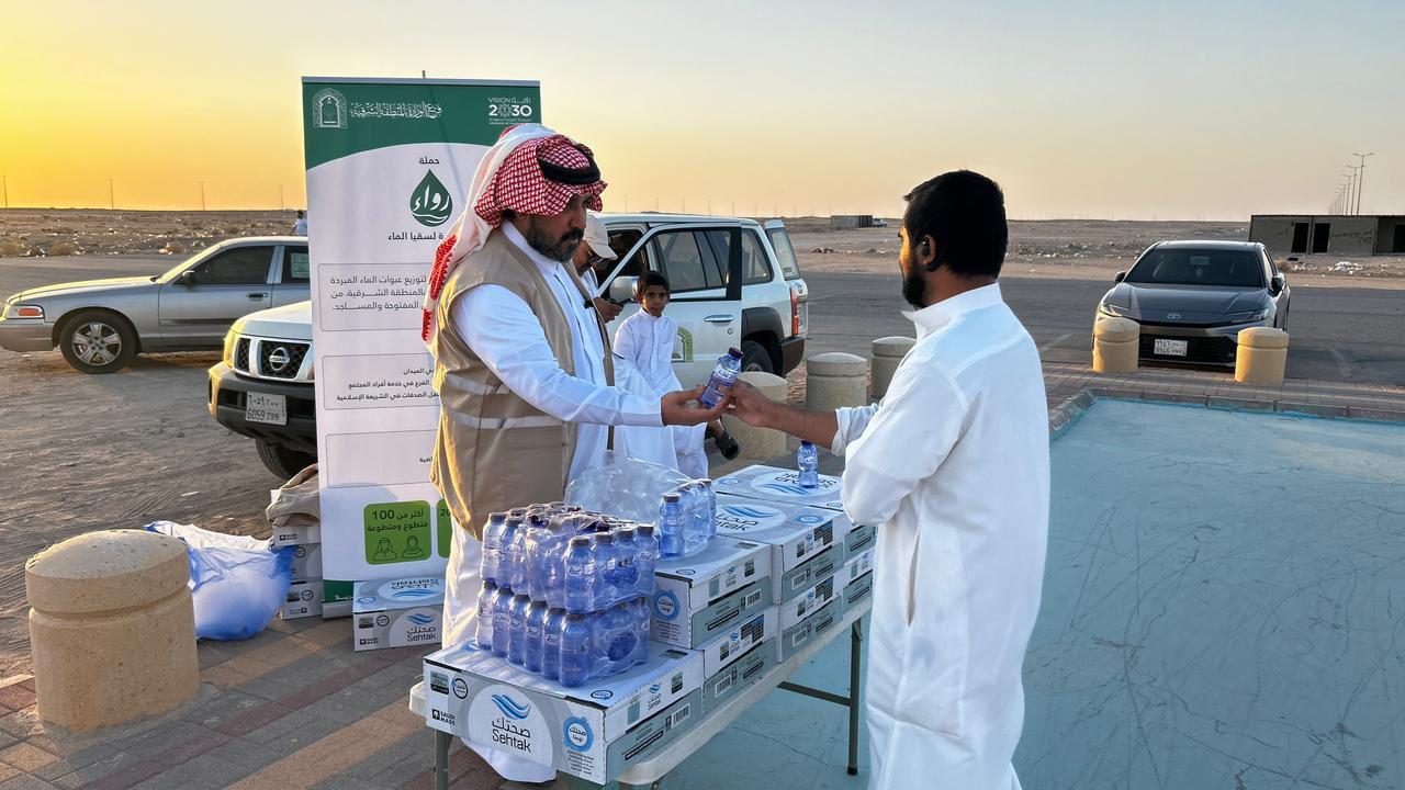يواصل فرع وزارة الشؤون الإسلامية والدعوة والإرشاد بالمنطقة الشرقية، ممثلاً في قسم العمل التطوعي، تنفيذ حملة "رواء" لسقيا الماء، التي انطلقت مطلع شهر ربيع الأول 1447هـ، حيث بلغ إجمالي ما تم توزيعه منذ بداية الحملة أكثر من 37 ألف عبوة ماء مبردة. وشهدت محافظة بقيق أولى فعاليات الحملة بتوزيع أكثر من 3 آلاف عبوة ماء مبردة في الجوامع والمساجد والأماكن العامة، فيما جرى توزيع أكثر من 24 ألف عبوة في وقت سابق بعدد من المواقع بمختلف محافظات المنطقة الشرقية.