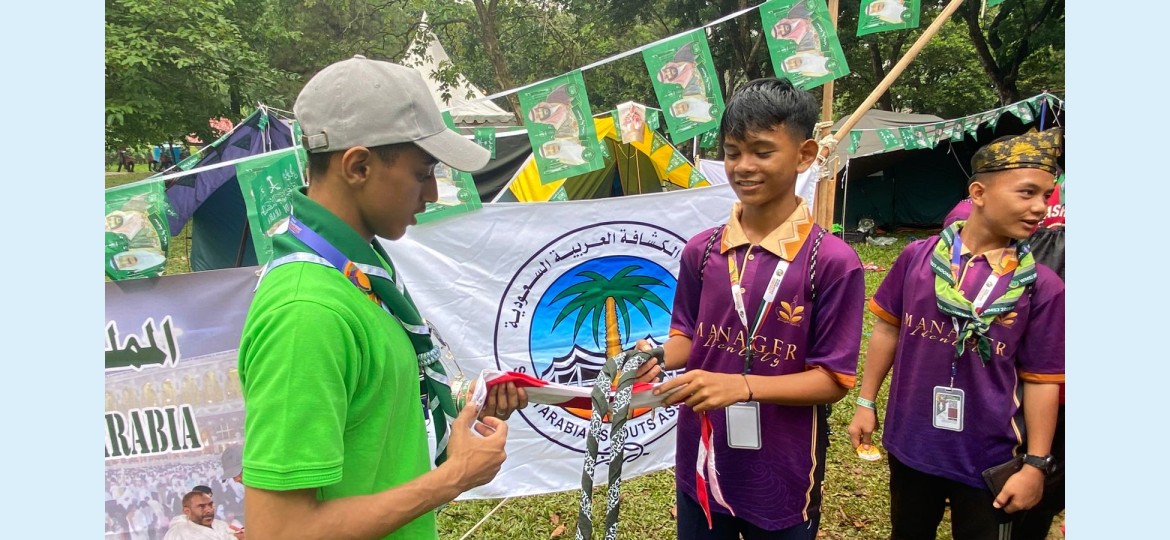 شهدت مشاركة جمعية الكشافة العربية السعودية في الجامبوري العالمي للكشاف المسلم 2025، الذي تستضيفه العاصمة الإندونيسية جاكرتا بالمعسكر الكشفي الوطني في "سيبوبور"، إقبالاً لافتاً من الوفود الكشفية العالمية على تبادل الهدايا التذكارية مع الكشافة السعوديين.