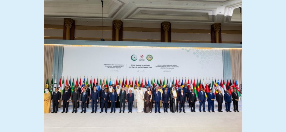 نحن، قادة دول وحكومات جامعة الدول العربية، ومنظمة التعاون الإسلامي، المجتمعون اليوم الاثنين 22 ربيع الأول 1447هـ الموافق 15 أيلول/سبتمبر 2025م، في العاصمة القطرية الدوحة، تلبية لدعوة كريمة من حضرة صاحب السمو الشيخ/ تميم بن حمد آل ثاني، أمير دولة قطر، وبرئاسة سموه، لبحث العدوان الإسرائيلي على دولة قطر، وتعبيراً عن موقفنا الموحد في إدانته والتضامن الكامل مع دولة قطر الشقيقة.