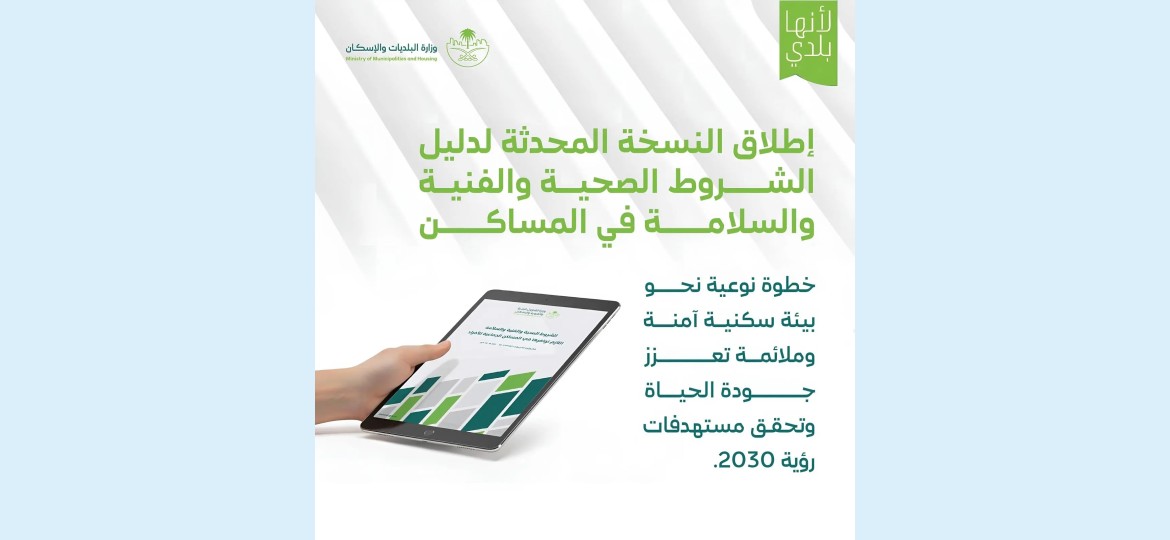 أطلقت وزارة البلديات والإسكان النسخة المحدثة لدليل الشروط الصحية والفنية والسلامة في المساكن الجماعية للأفراد، في إطار جهودها لتنظيم هذا النوع من المساكن وتوحيد ضوابطها، بما يُسهم في توفير بيئة سكنية آمنة وصحية تراعي متطلبات القاطنين، وتدعم جودة الحياة في مدن المملكة.