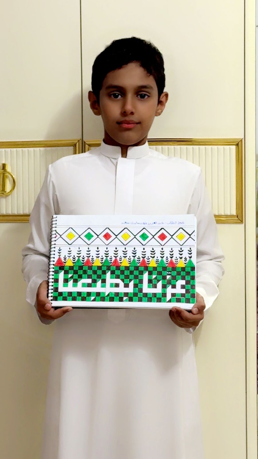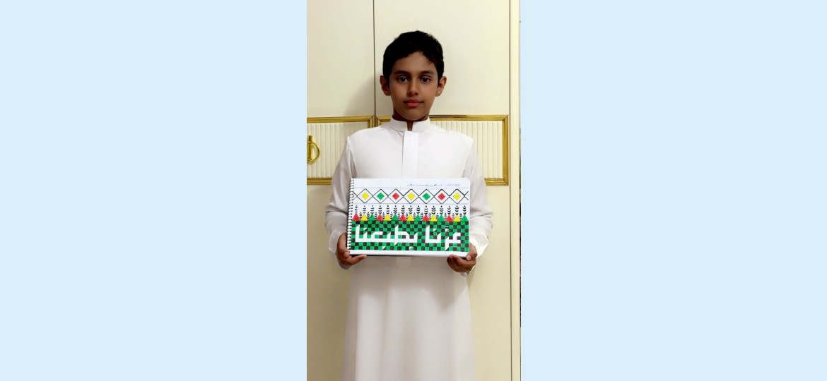 🔹 الابن عبد الله سالم الحقيلي (ثالث ابتدائي):"وطني نقش حبه في قلوبنا. سأكبر وأرد له الجميل بالعمل والوفاء. دمت في عزا وكرما وطنا مهاب ودامت أفراحك ونسأل الله ان يعز الوطن والمليك.. أحبك ياوطني".
