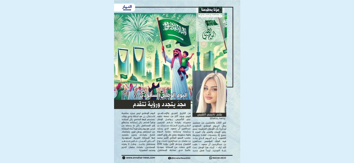 اليوم الوطني ليس مجرّد مناسبة للاحتفال، بل هو لحظة وعي وولاء، نستحضر فيها الماضي بكل أمجاده، ونقرأ الحاضر بكل إنجازاته، ونتطلّع إلى المستقبل بكل ما يحمله من فرص، هو يوم يعبّر فيه أبناء المملكة عن اعتزازهم بوطنٍ قوي، متماسك، شامخ بقيادته، وعزيز بشعبه.