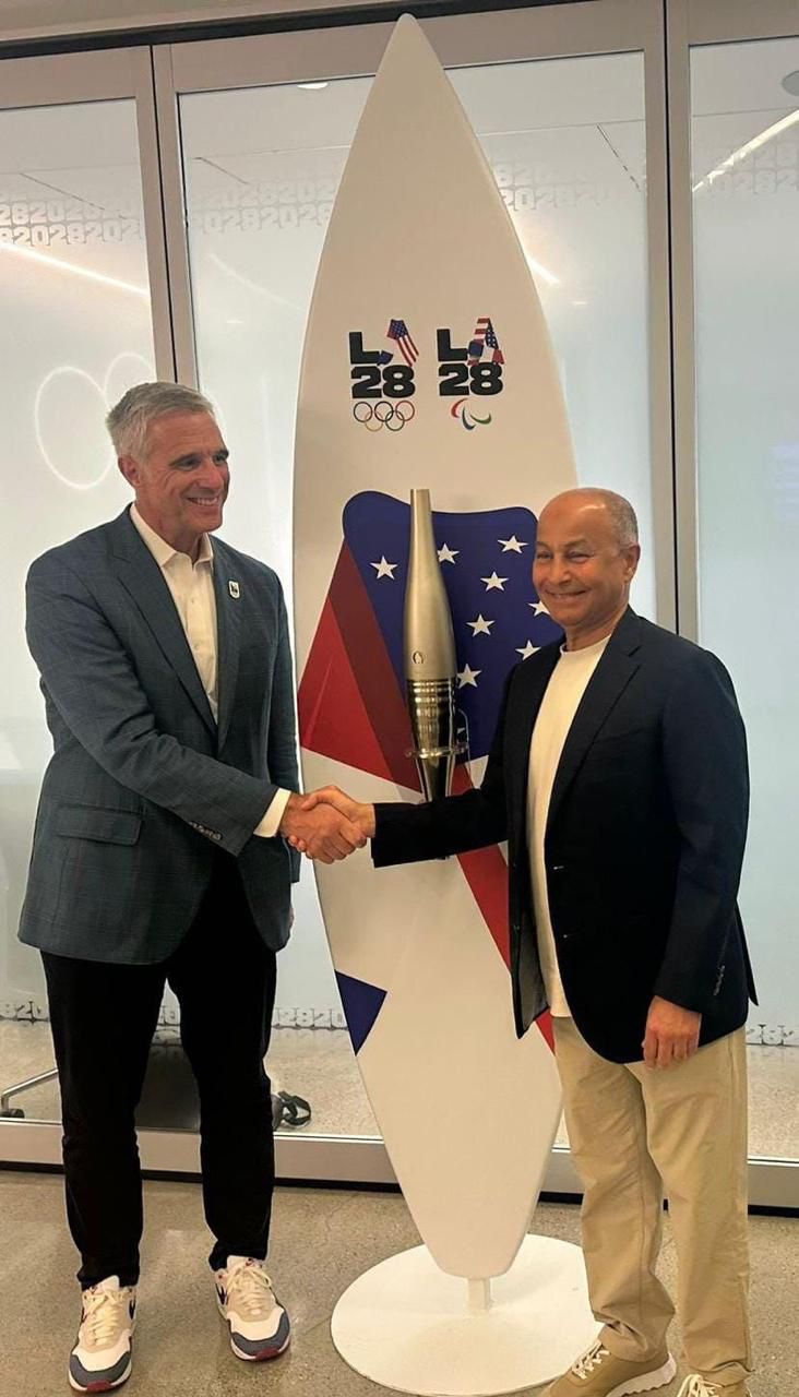 وعبر المسلم، عن خالص امتنانه لقيادة الجنرال هوفر والسيدة فيرغسون ولجهود فريق LA28 المتفاني. مؤكداً أن الحماس يتزايد، وأن أجواء لوس أنجلوس تنبض بالحيوية والتوقعات.