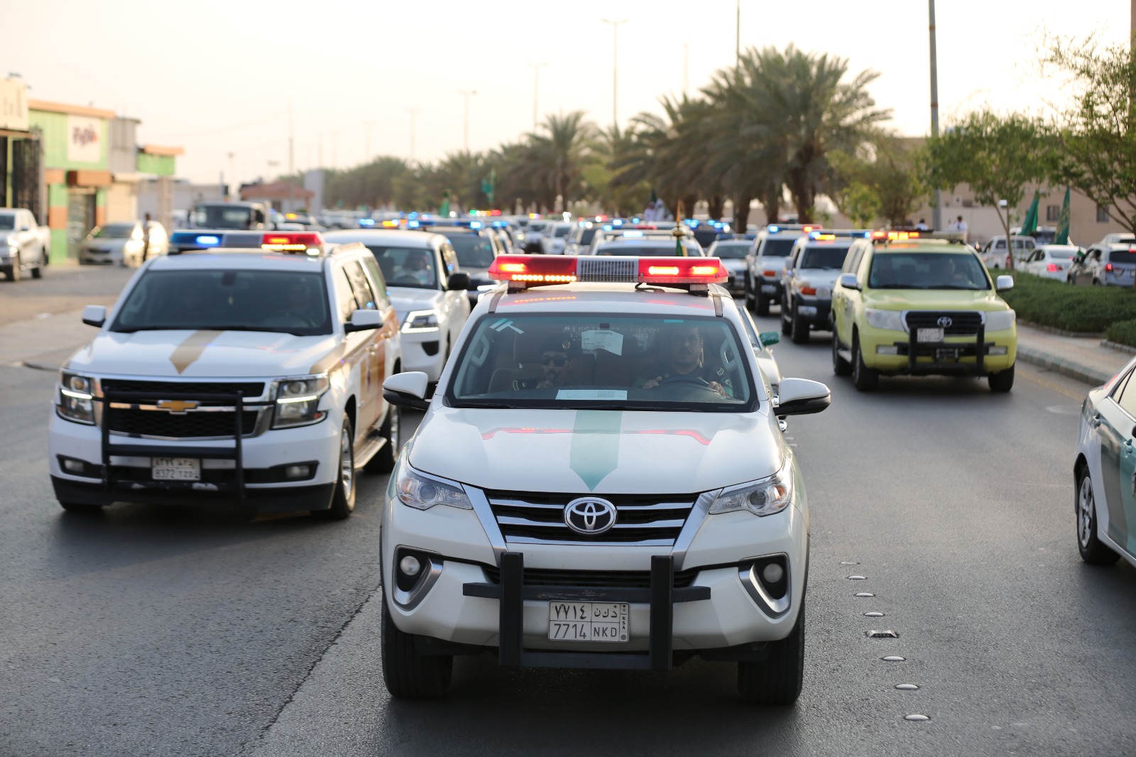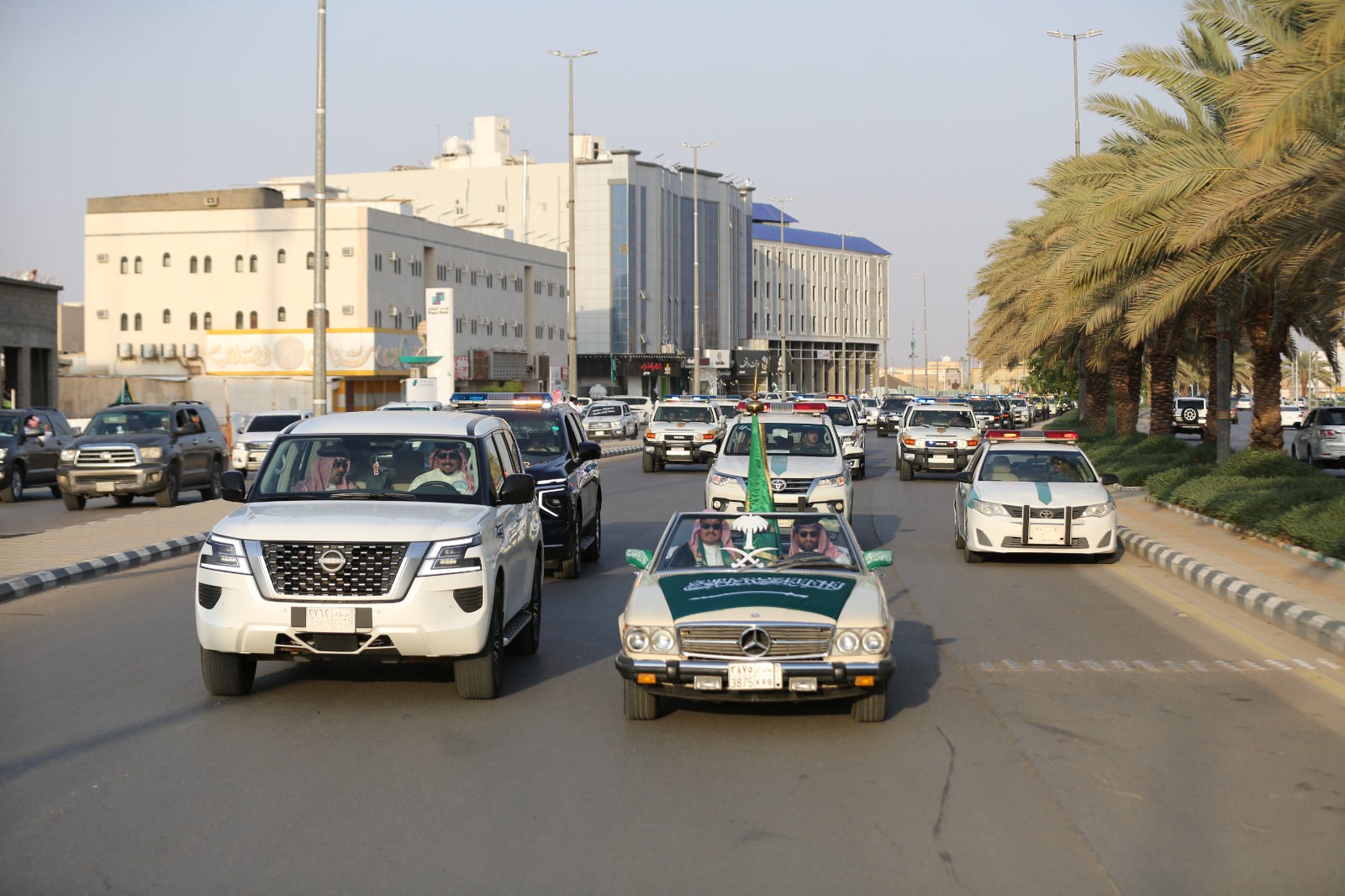 واصطف الأهالي والمقيمون على جانبي الطريق رافعين الأعلام الوطنية ومعبّرين عن مشاعر الفرح والاعتزاز بهذه المناسبة الغالية، مؤكدين ولاءهم ووفاءهم للوطن وقيادته الرشيدة.