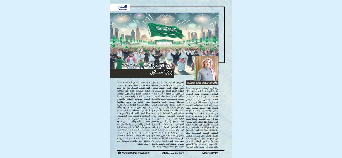 إن هذا اليوم ليس مجرد حدثٍ يمر في تقويم الأيام، بل هو رمز للفخر والانتماء، وقفة للتأمل في معاني الوحدة الوطنية التي أرسى دعائمها المؤسس، وجددها أبناؤه الملوك البررة من بعده، حتى غدت المملكة نموذجًا رائدًا في الاستقرار السياسي والنهضة التنموية.